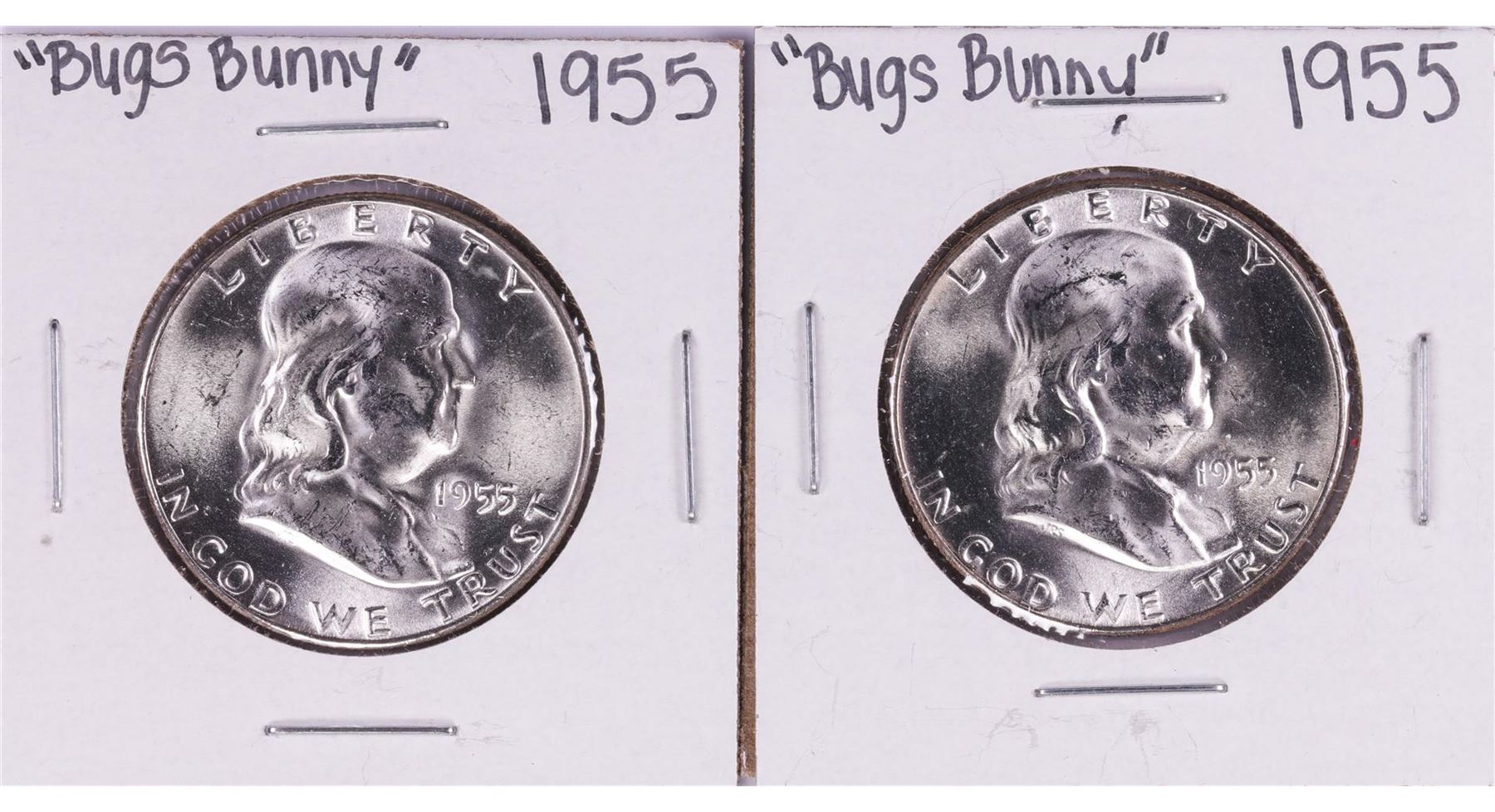 One Lot of (2) 1955 "Bugs Bunny" Franklin Half Dollar Coins.
