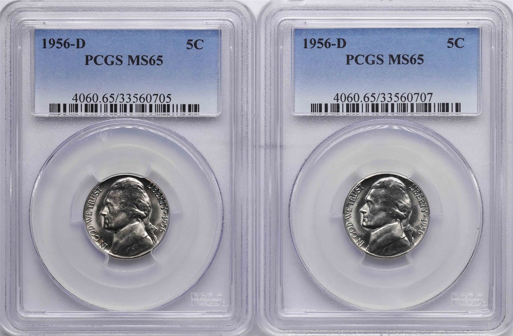 One Lot of (2) 1956-D Jefferson Nickel Coins PCGS MS65. PCGS Graded.