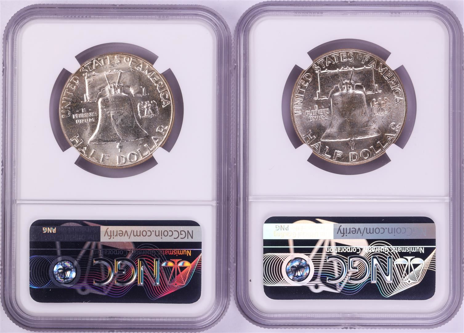 Lot of (2) 1956 Franklin Half Dollar Coins NGC MS64