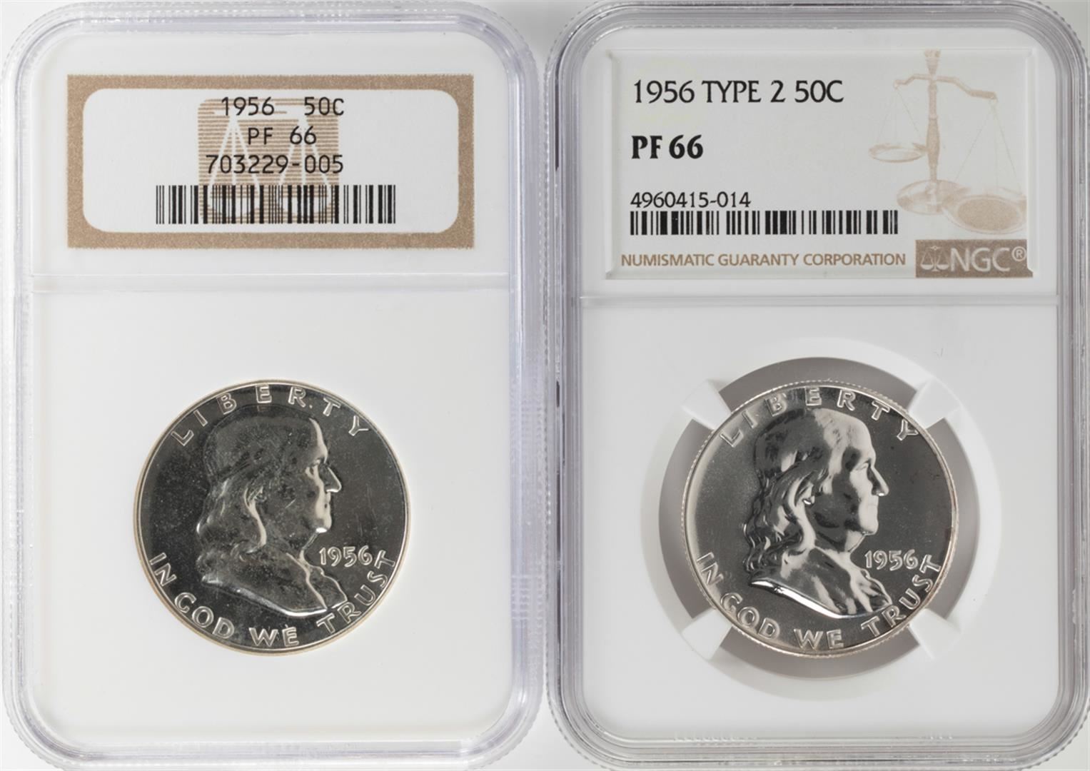 One Lot of (2) 1956 Type 2 Proof Franklin Half Dollar Coins NGC PF66. NGC Certified.