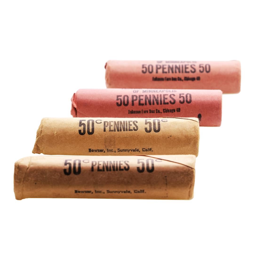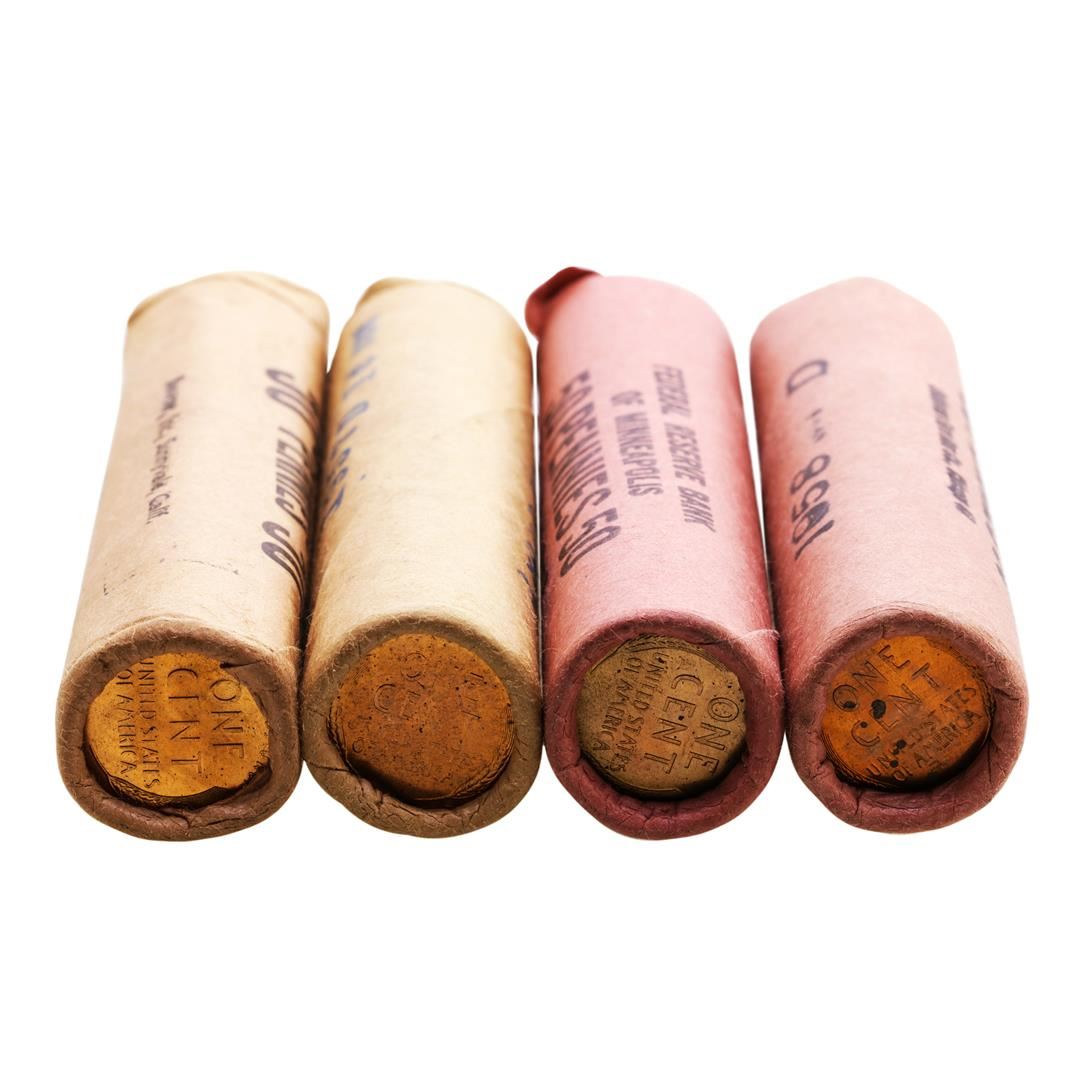 Lot of (2) 1957-D & 1958-D (50) Brilliant Uncirculated Lincoln Wheat Cent Coin Rolls