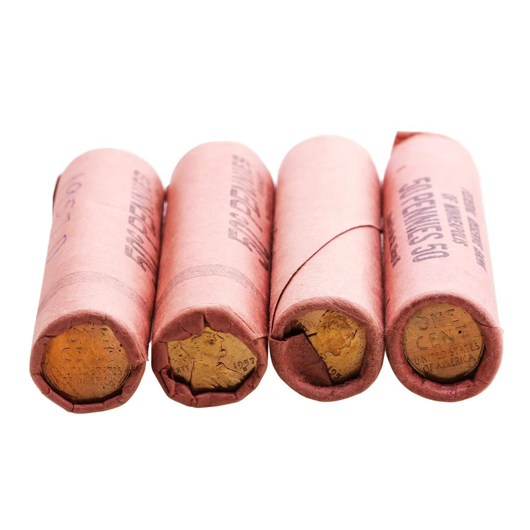 Lot of (2) 1957-D & 1958-D (50) Brilliant Uncirculated Lincoln Wheat Cent Coin Rolls