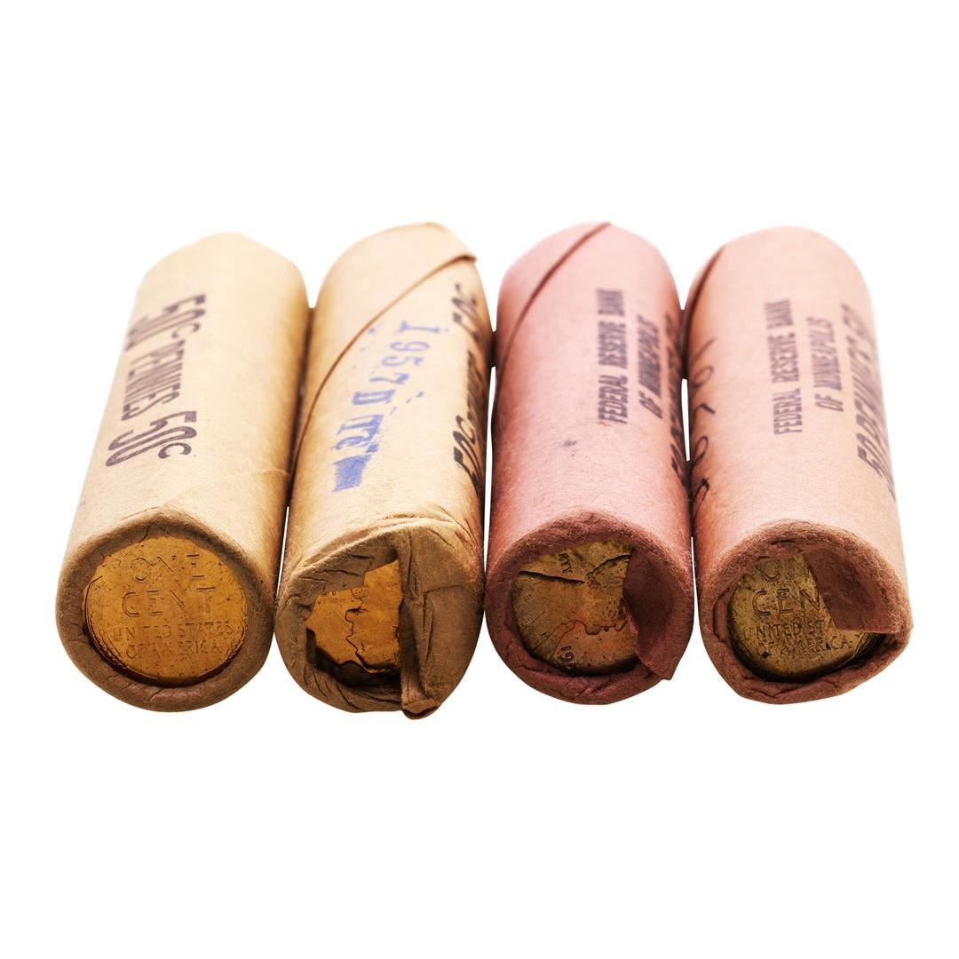 One Lot of (2) 1957-D & 1958-D (50) Brilliant Uncirculated Lincoln Wheat Cent Coin Rolls.