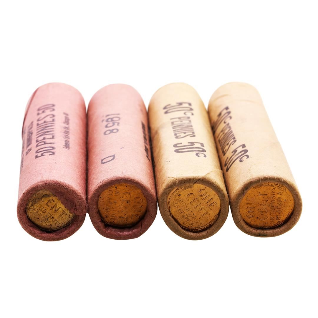 Lot of (2) 1957-D & 1958-D (50) Brilliant Uncirculated Lincoln Wheat Cent Coin Rolls