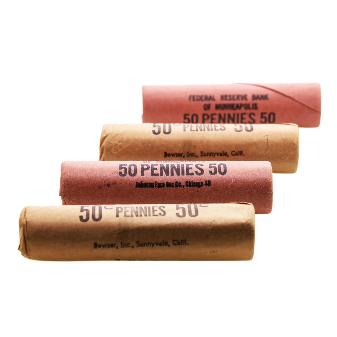 Lot of (2) 1957-D & 1958-D (50) Brilliant Uncirculated Lincoln Wheat Cent Coin Rolls