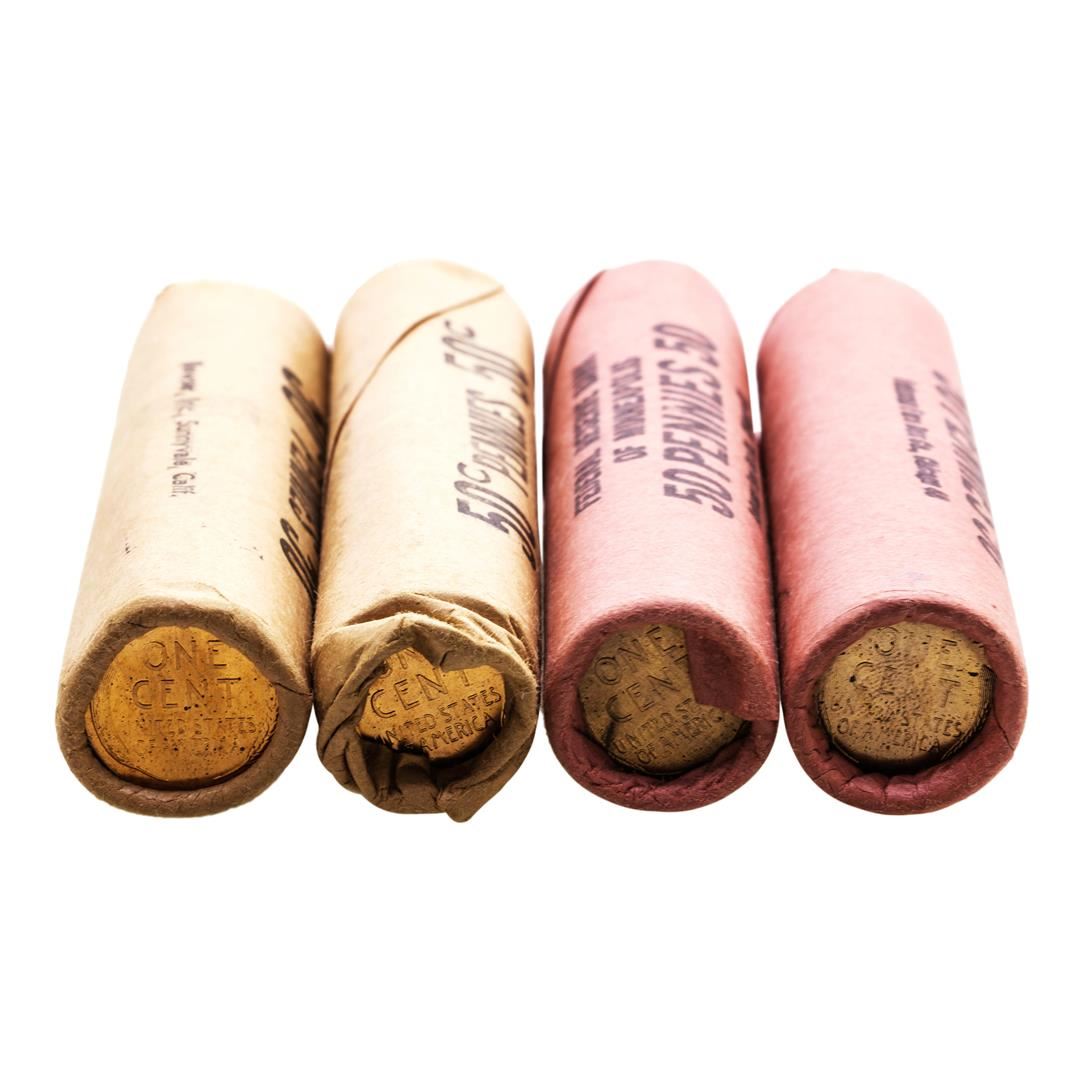 One Lot of (2) 1957-D & (2) 1958-D Lincoln Wheat Cent Rolls.