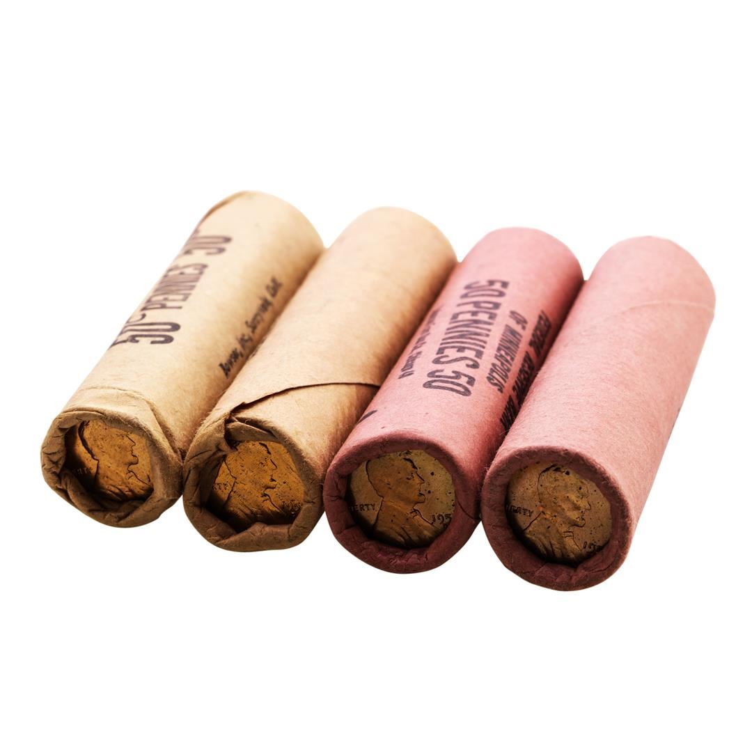 One Lot of (2) 1957-D & (2) 1958-D Lincoln Wheat Cent Rolls.