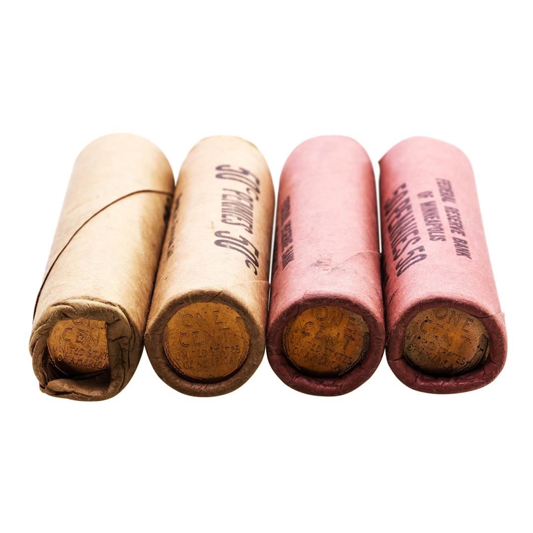 One Lot of (2) 1957-D & (2) 1958-D Lincoln Wheat Cent Rolls.