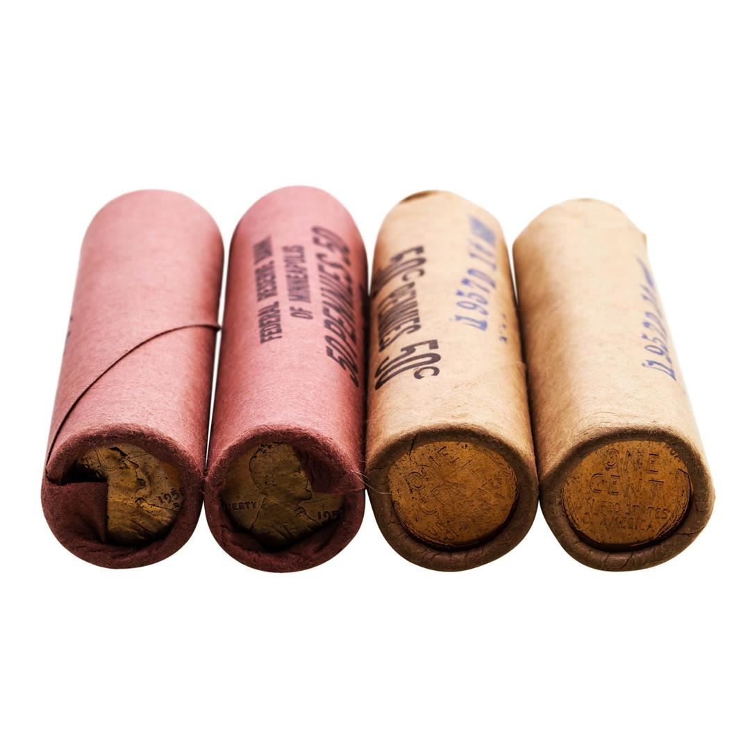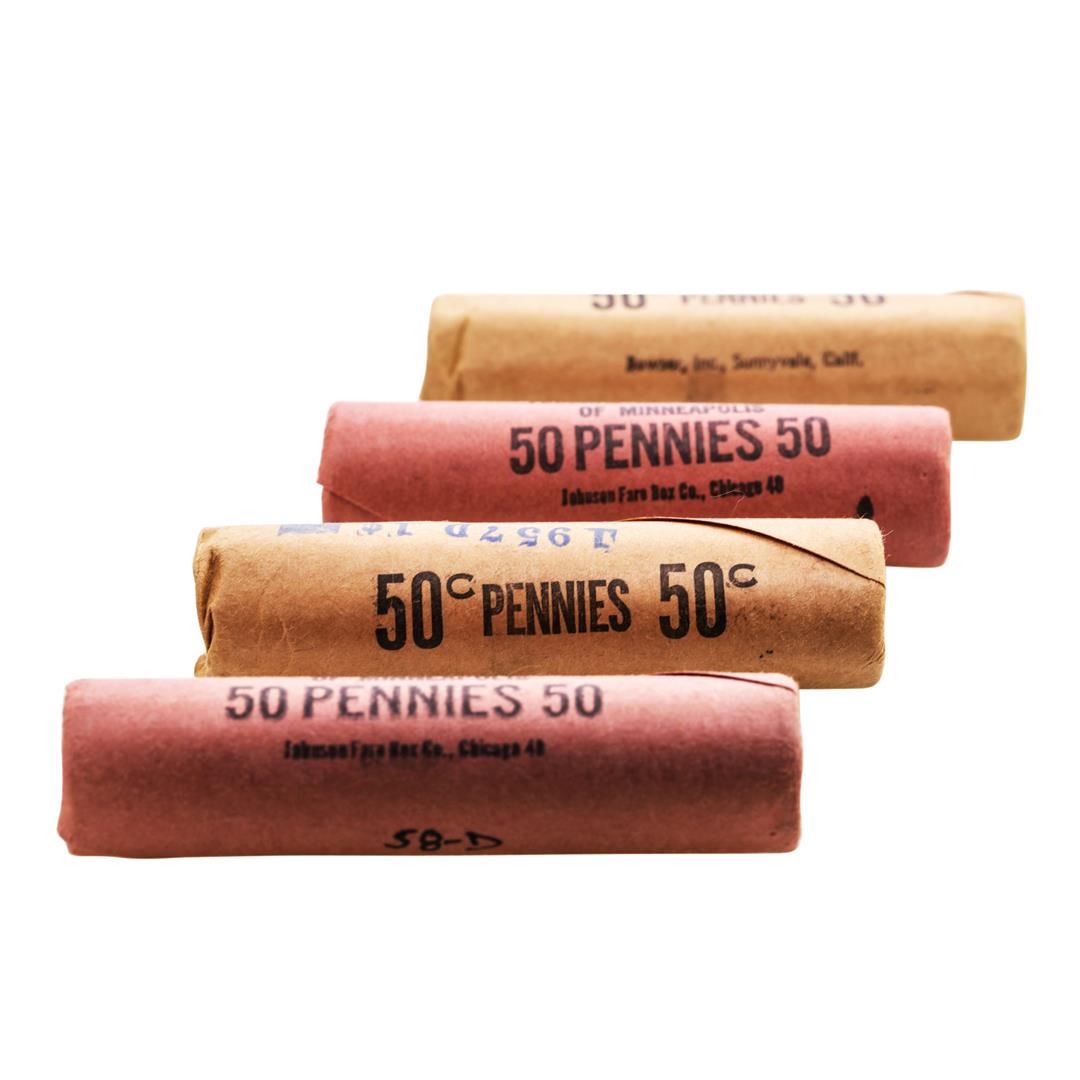 One Lot of (2) 1957-D & (2) 1958-D Lincoln Wheat Cent Rolls.