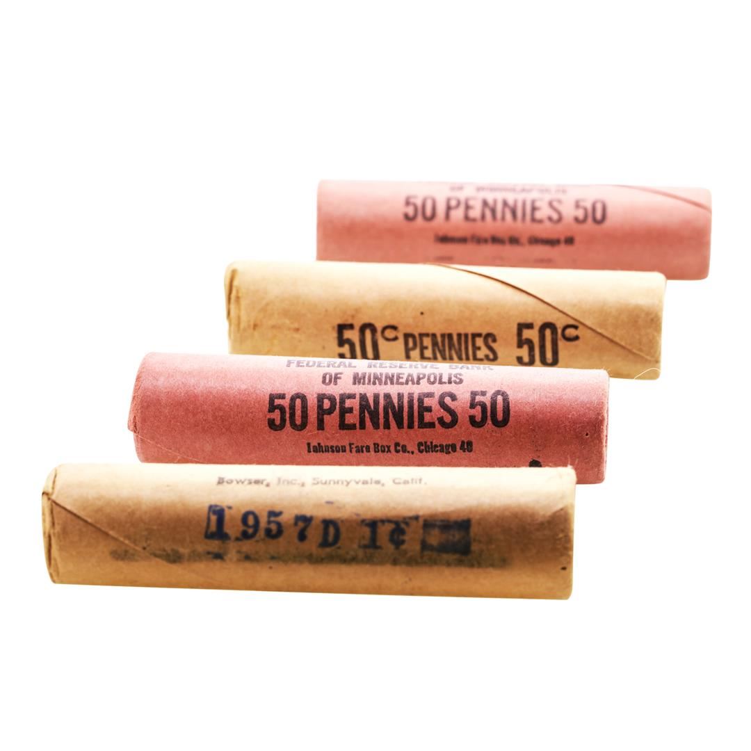 One Lot of (2) 1957-D & (2) 1958-D Lincoln Wheat Cent Rolls.