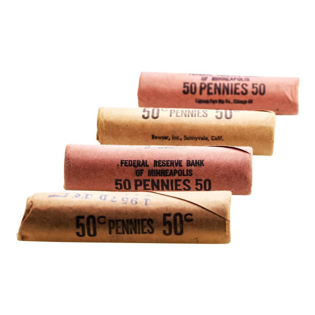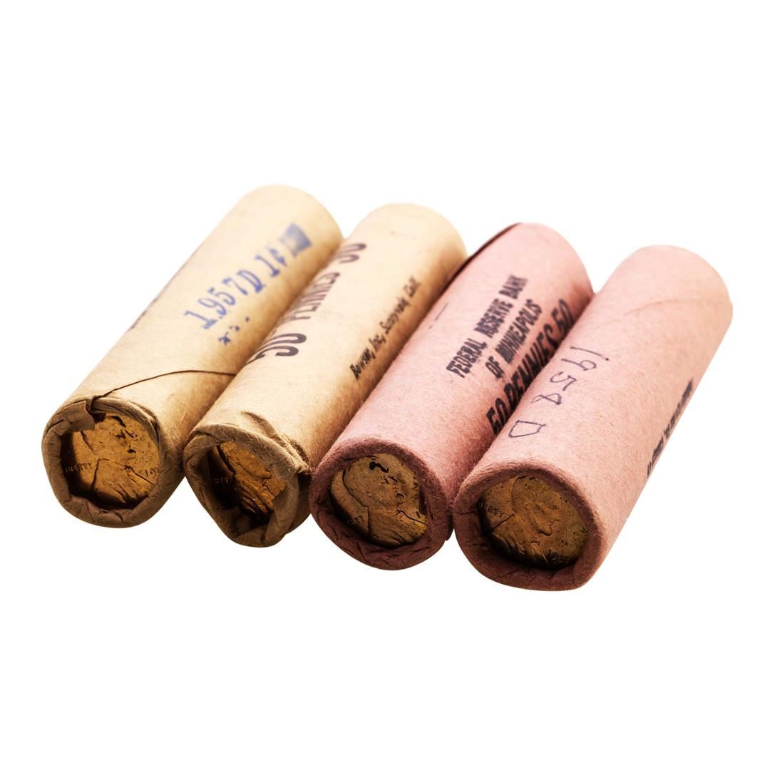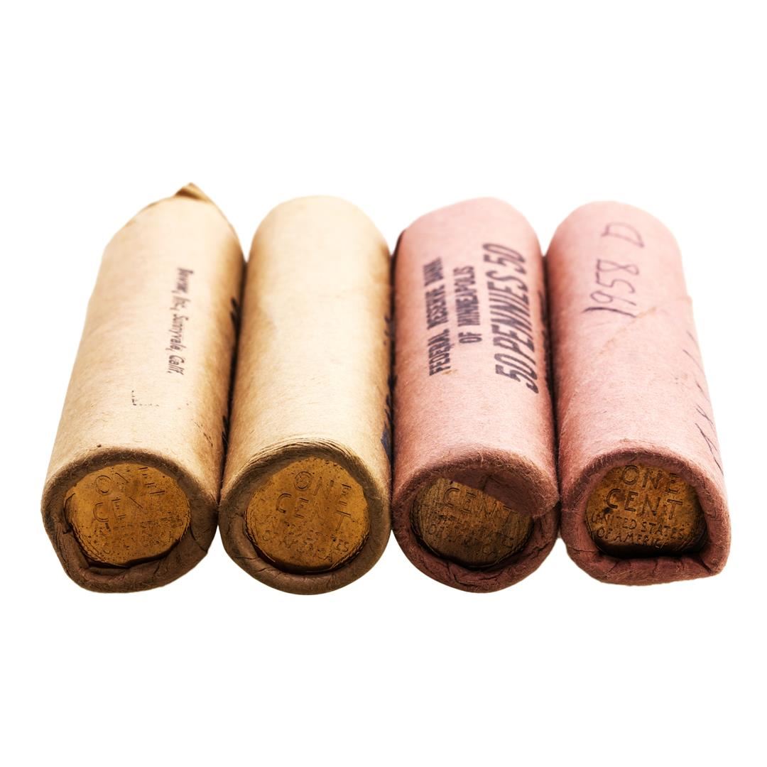 One Lot of (2) 1957-D & (2) 1958-D Lincoln Wheat Cent Rolls.