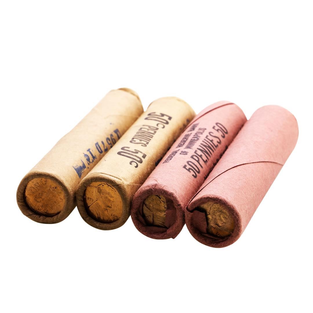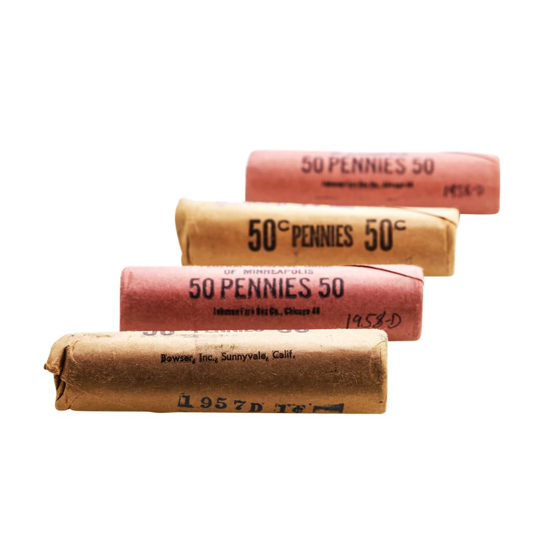 One Lot of (2) 1957-D & (2) 1958-D Lincoln Wheat Cent Rolls.