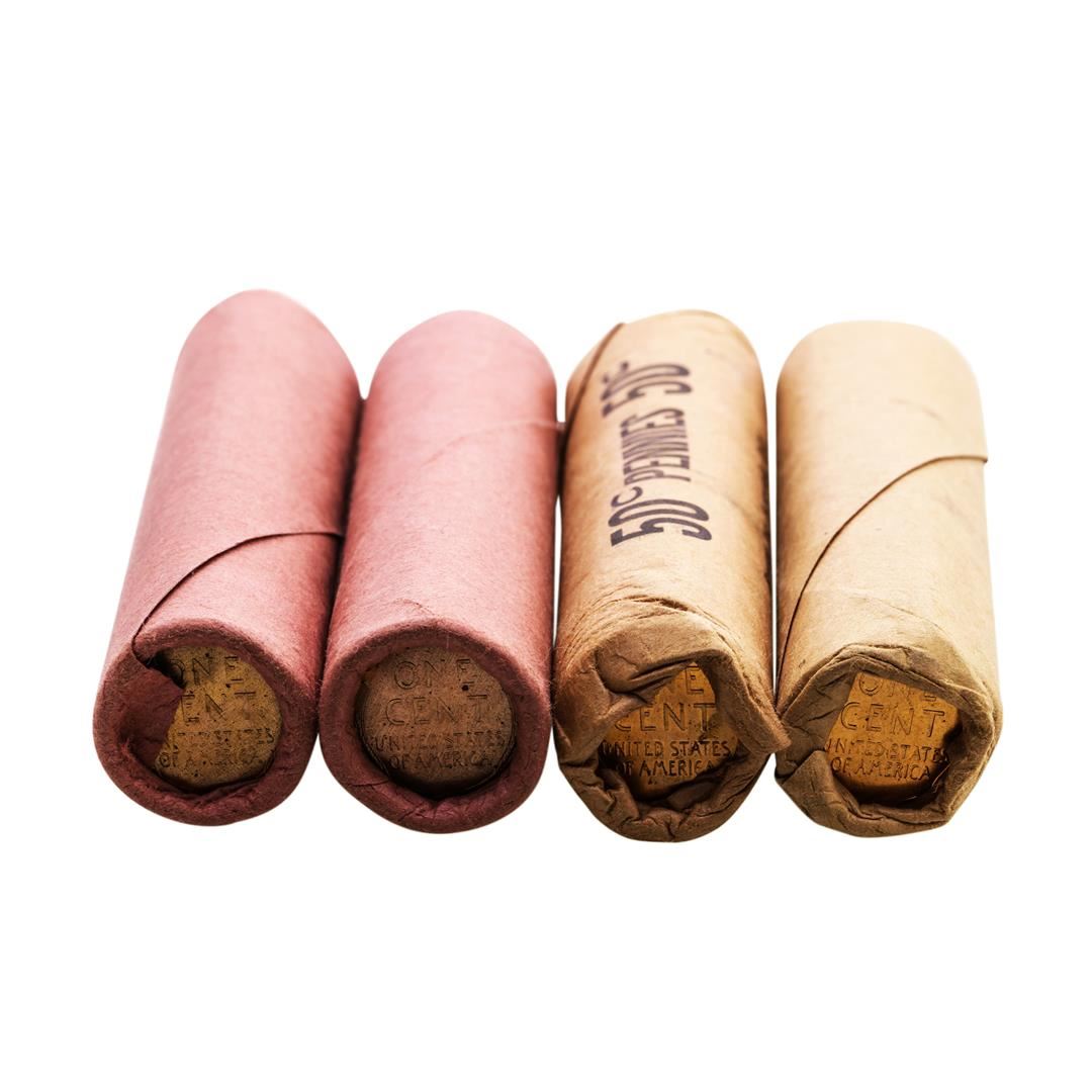 One Lot of (2) 1957-D & (2) 1958-D Lincoln Wheat Cent Rolls.