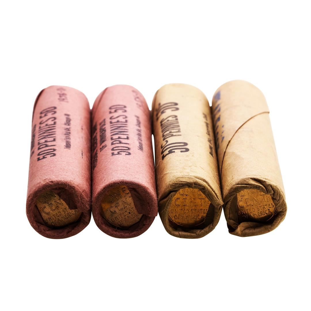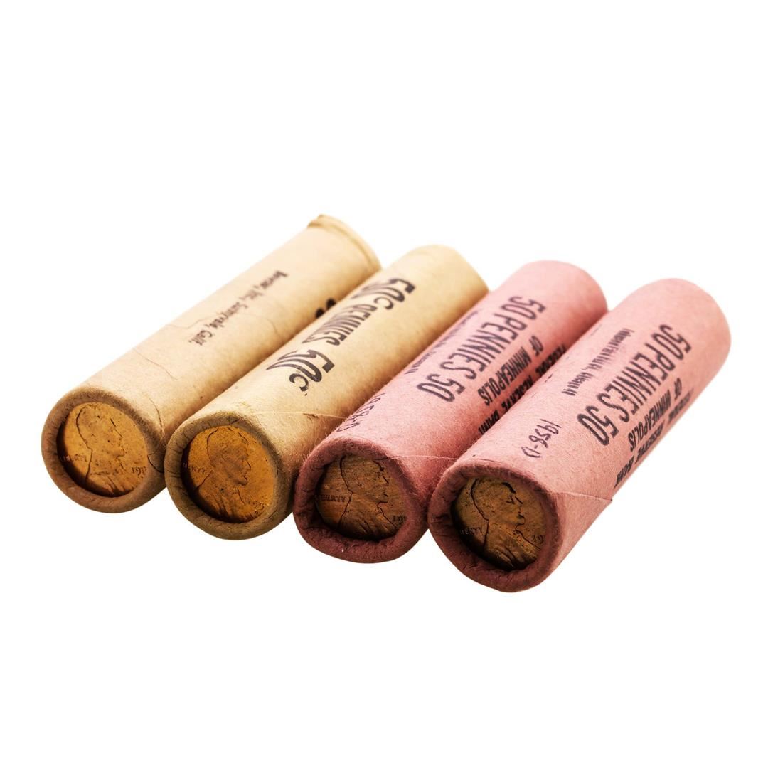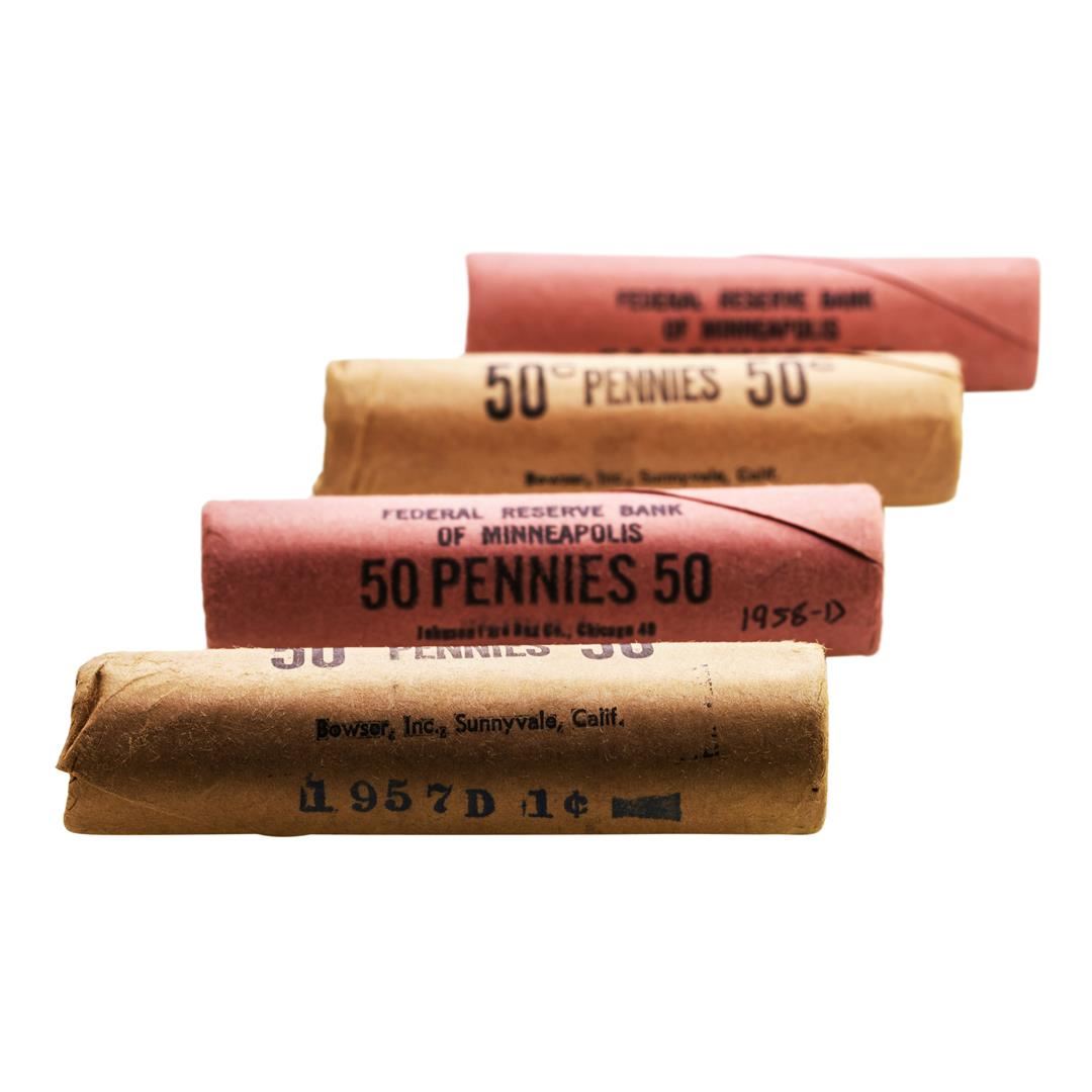 One Lot of (2) 1957-D & (2) 1958-D Lincoln Wheat Cent Rolls.
