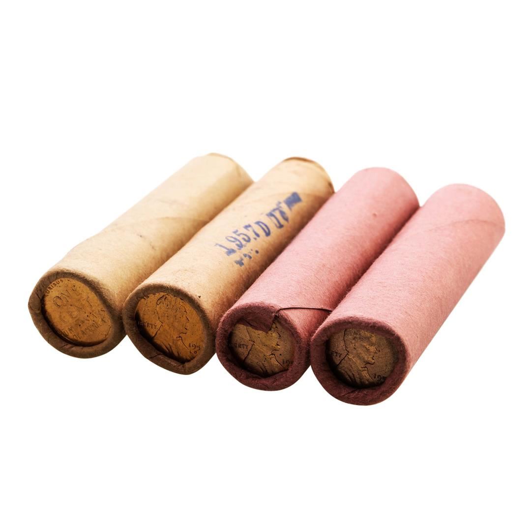 One Lot of (2) 1957-D & (2) 1958-D Lincoln Wheat Cent Rolls.