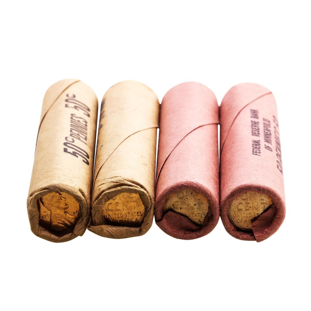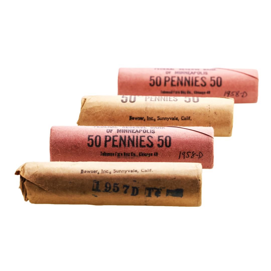 One Lot of (2) 1957-D & (2) 1958-D Lincoln Wheat Cent Rolls.