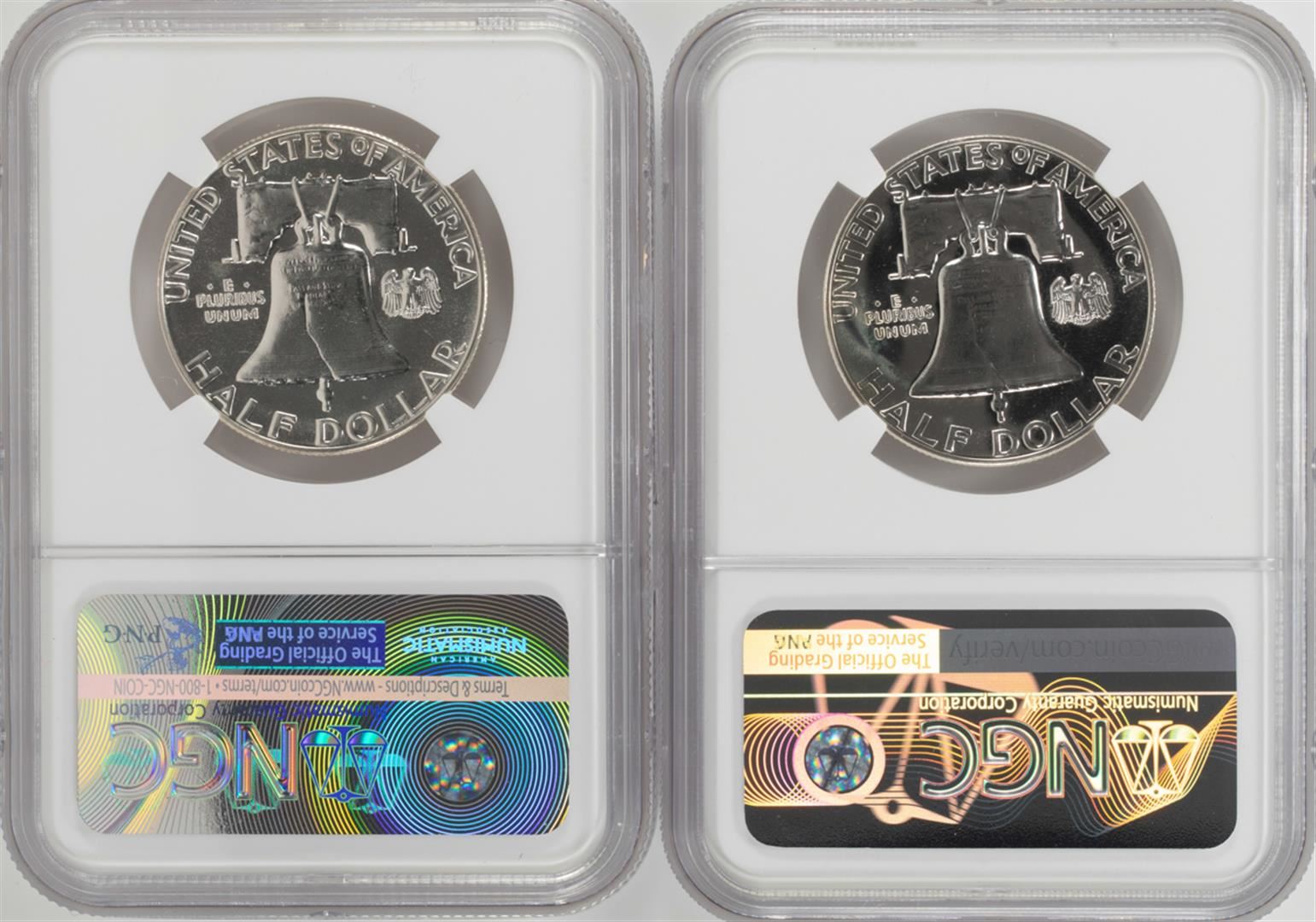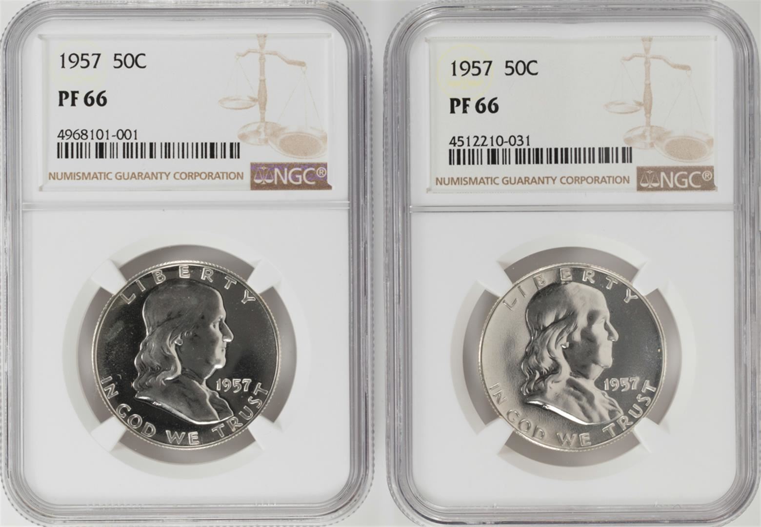 Lot of (2) 1957 Proof Franklin Half Dollar Coins NGC PF66