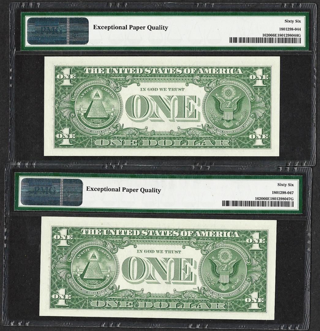 Lot of (2) 1957A $1 Silver Certificate Notes Fr.1620 PMG Gem Uncirculated 66EPQ