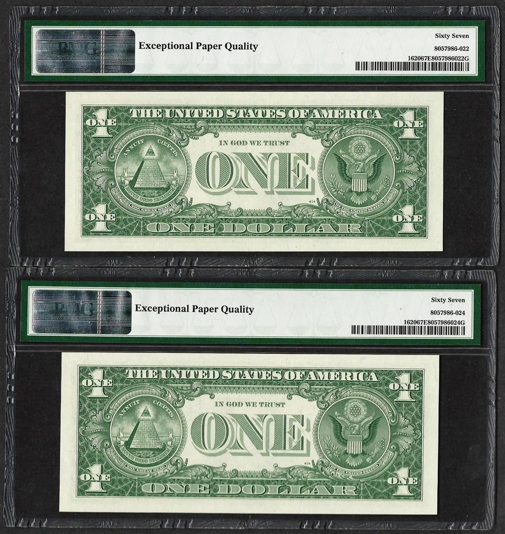 Lot of (2) 1957A $1 Silver Certificate Notes PMG Superb Gem Unc. 67EPQ