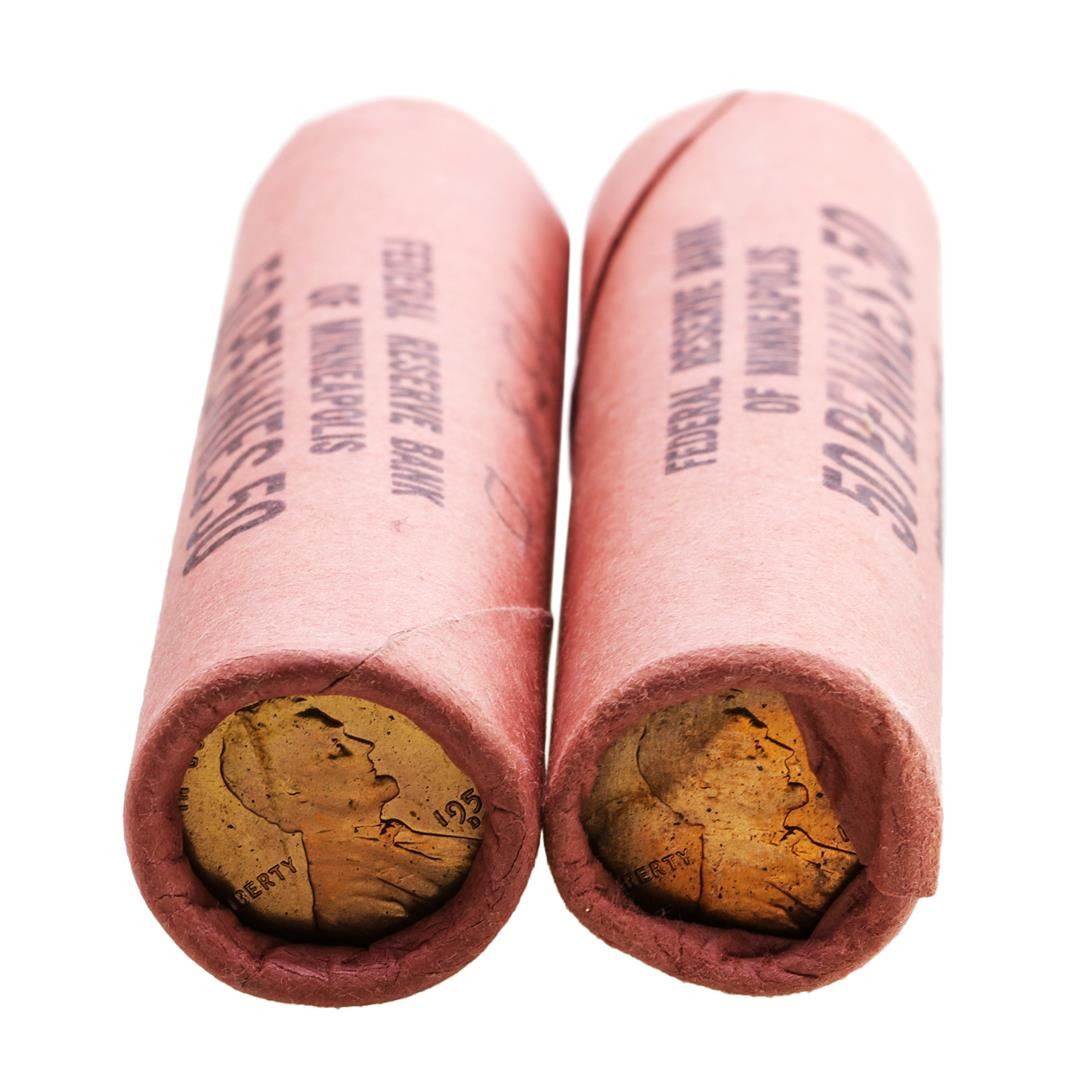 One Lot of (2) 1958-D (50) Brilliant Uncirculated Lincoln Wheat Cent Coin Rolls.