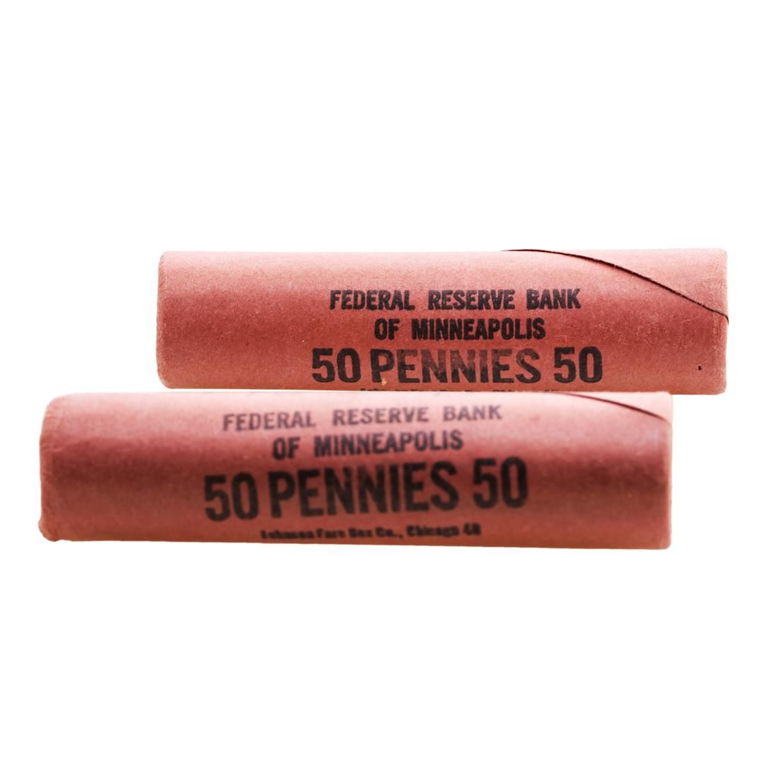 Lot of (2) 1958-D (50) Brilliant Uncirculated Lincoln Wheat Cent Coin Rolls