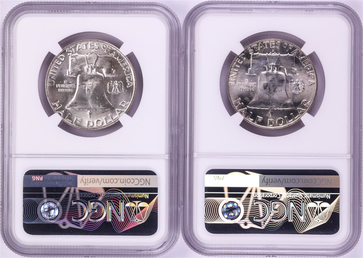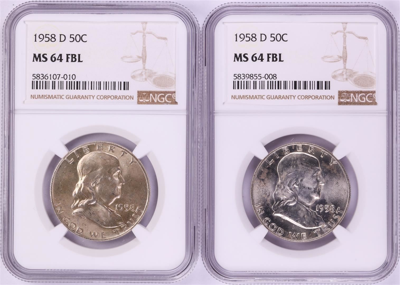 Lot of (2) 1958-D Franklin Half Dollar Coins NGC MS64FBL