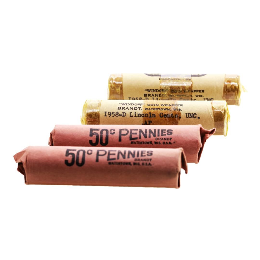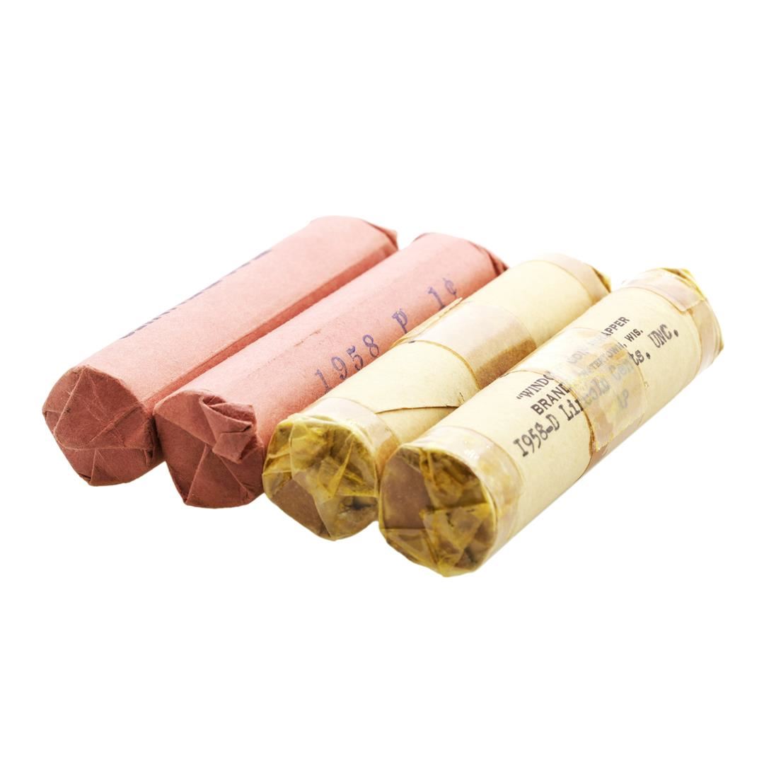 Lot of (2) 1958-P & 1958-D (50) Brilliant Uncirculated Lincoln Wheat Cent Coin Rolls