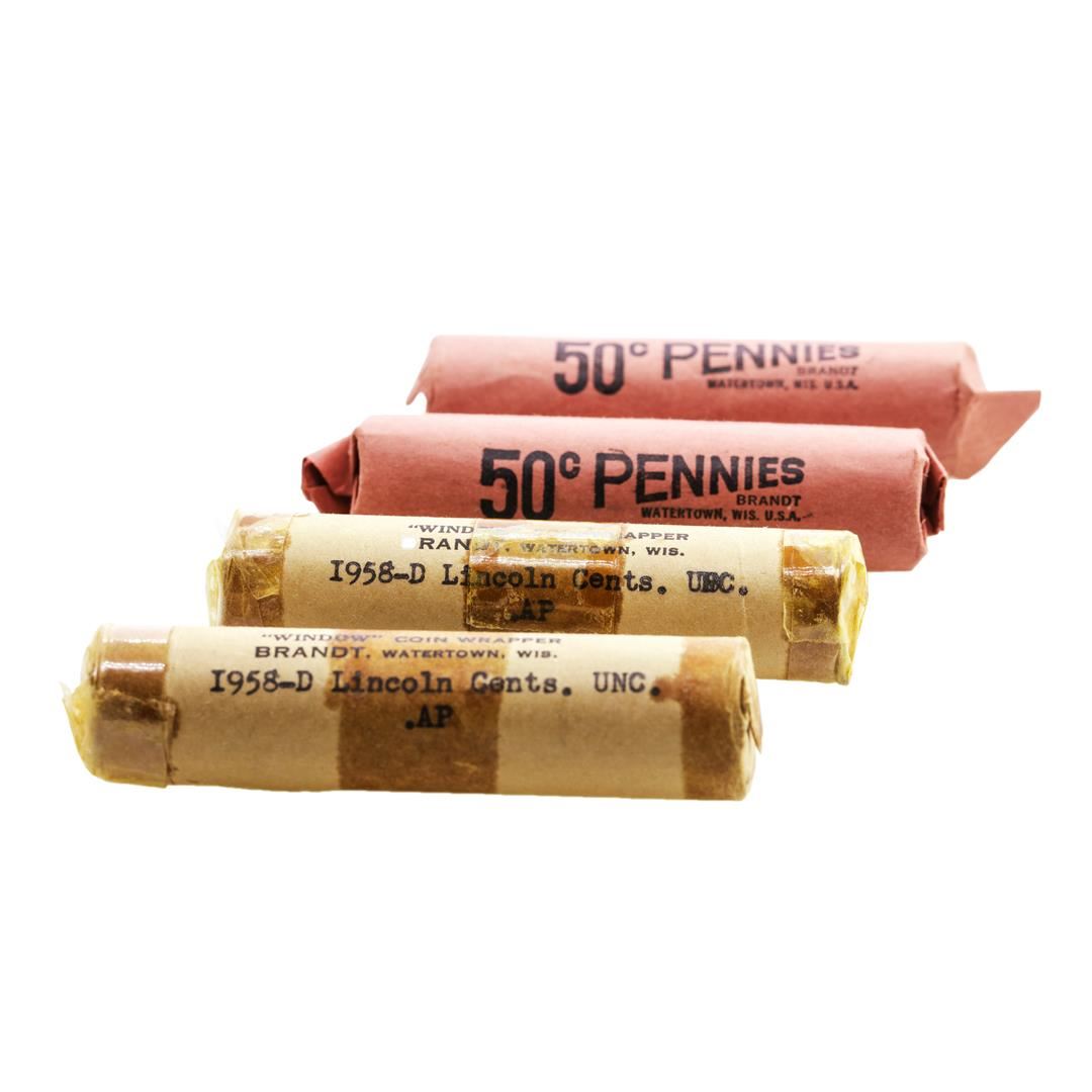 Lot of (2) 1958-P & 1958-D (50) Brilliant Uncirculated Lincoln Wheat Cent Coin Rolls