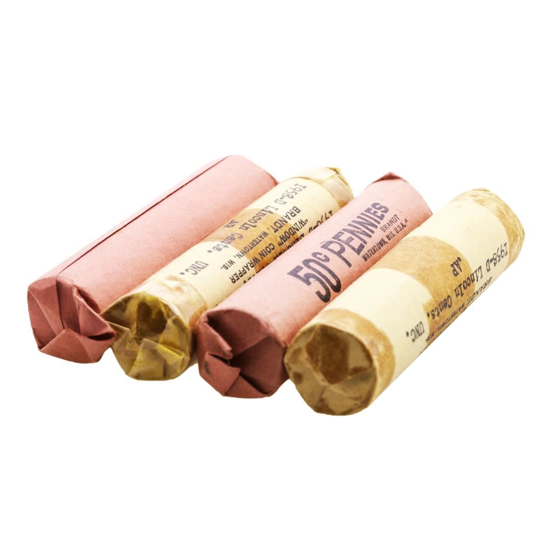 Lot of (2) 1958-P & 1958-D (50) Brilliant Uncirculated Lincoln Wheat Cent Coin Rolls