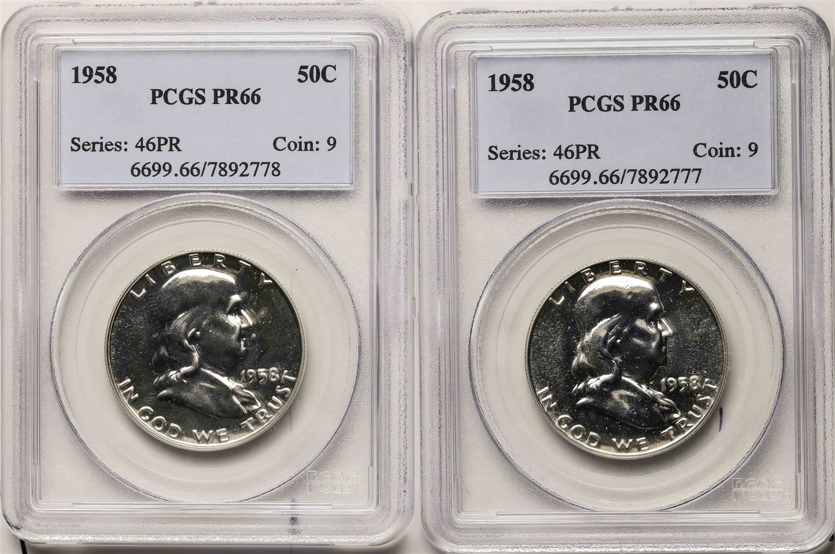 Lot of (2) 1958 Proof Franklin Half Dollar Coins PCGS PR66