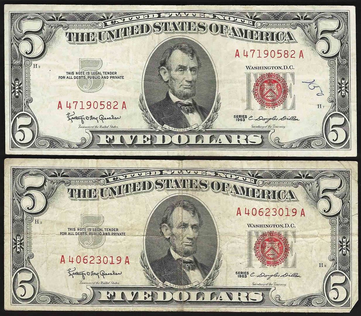 One Lot of (2) 1963 $5 Legal Tender Notes.