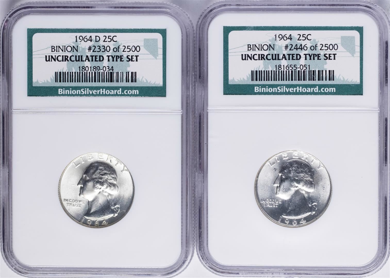 Lot of (2) 1964 & 1964-D Washnigton Quarter Coins NGC Uncirculated Binion Hoard