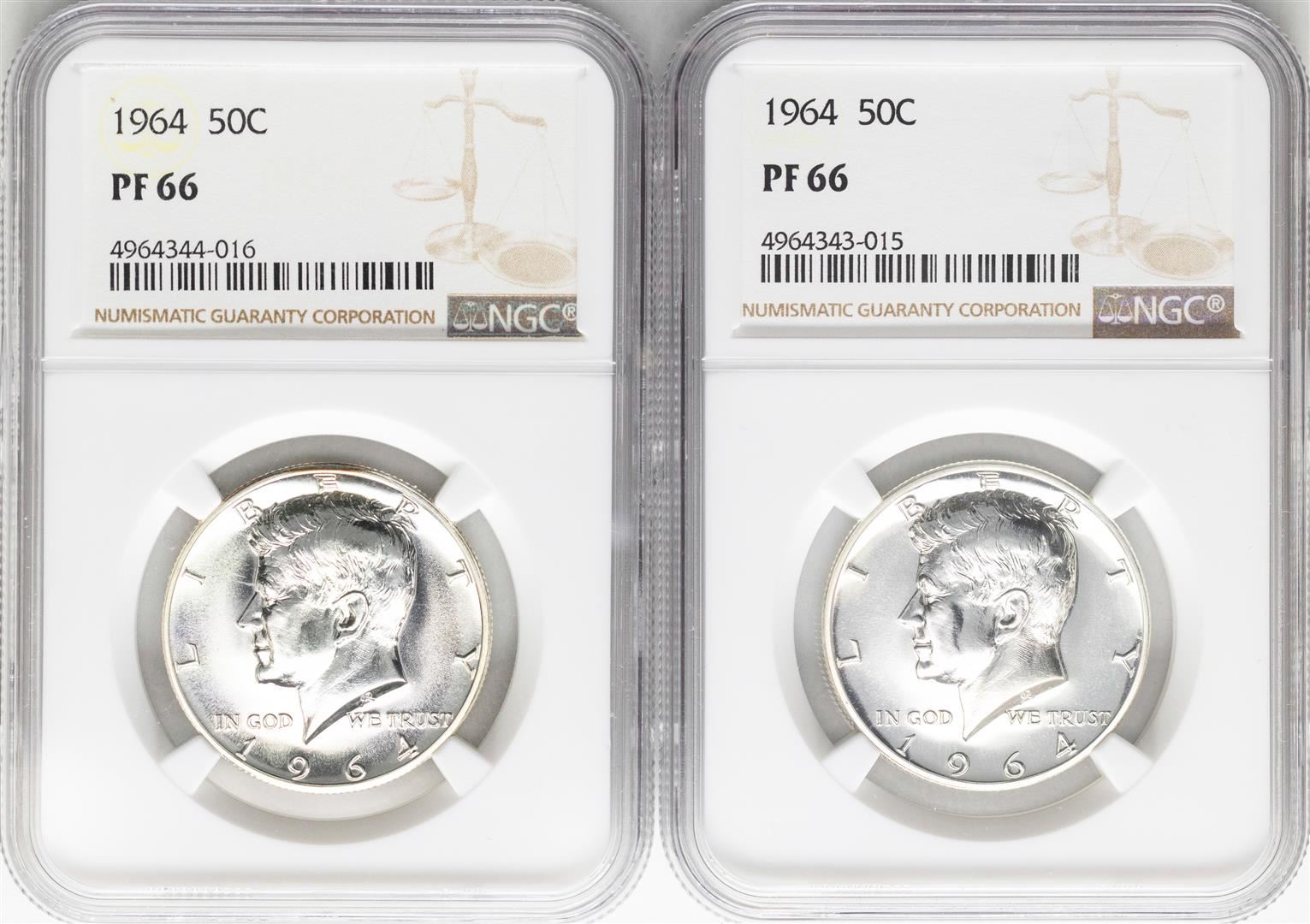 One Lot of (2) 1964 Franklin Half Dollar Coins NGC PF66. NGC Certified.