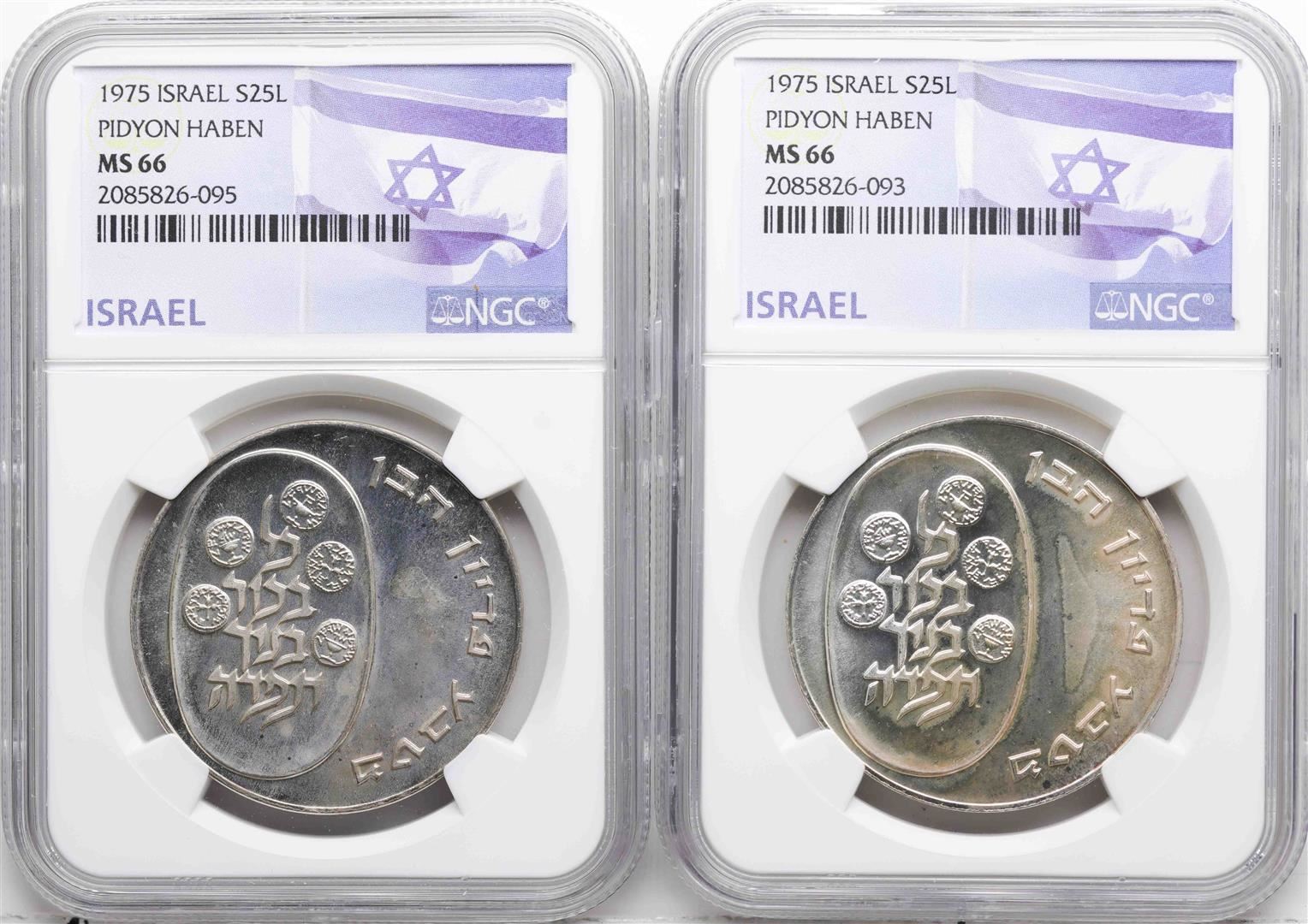 Lot of (2) 1975 Israel 25 Lirot Pidyon Haben Silver Coins NGC MS66