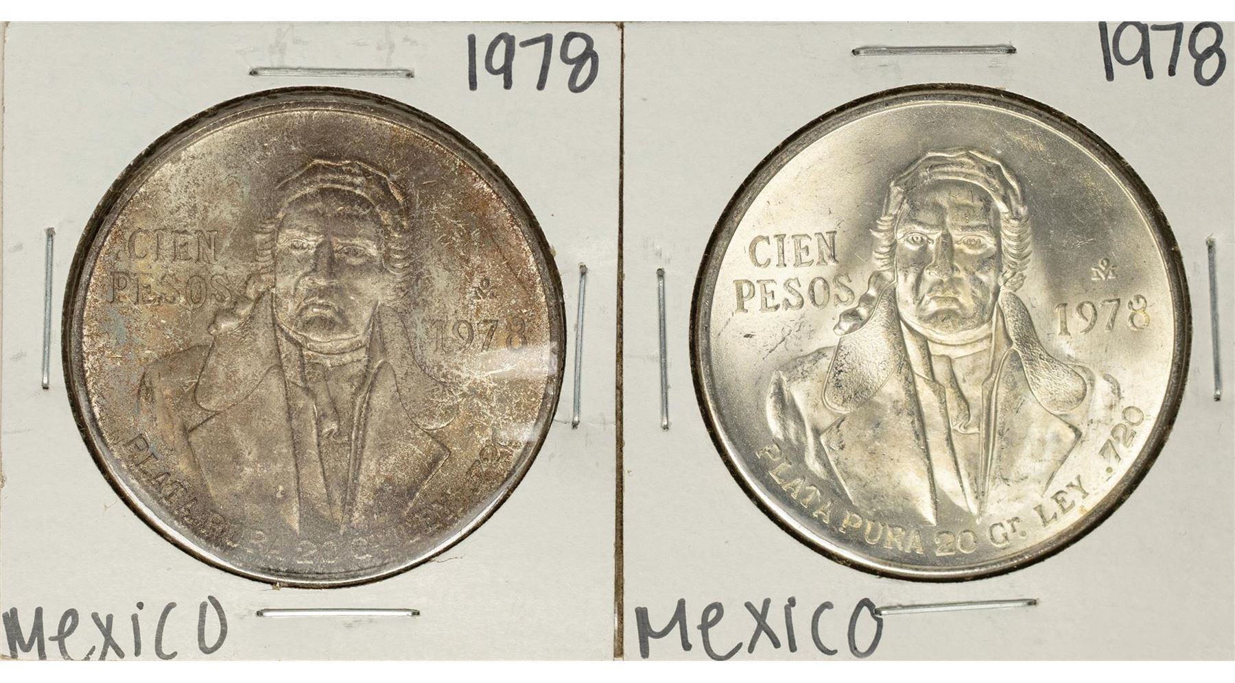 One Lot of (2) 1978 Mexico Cien Pesos Silver Coins.