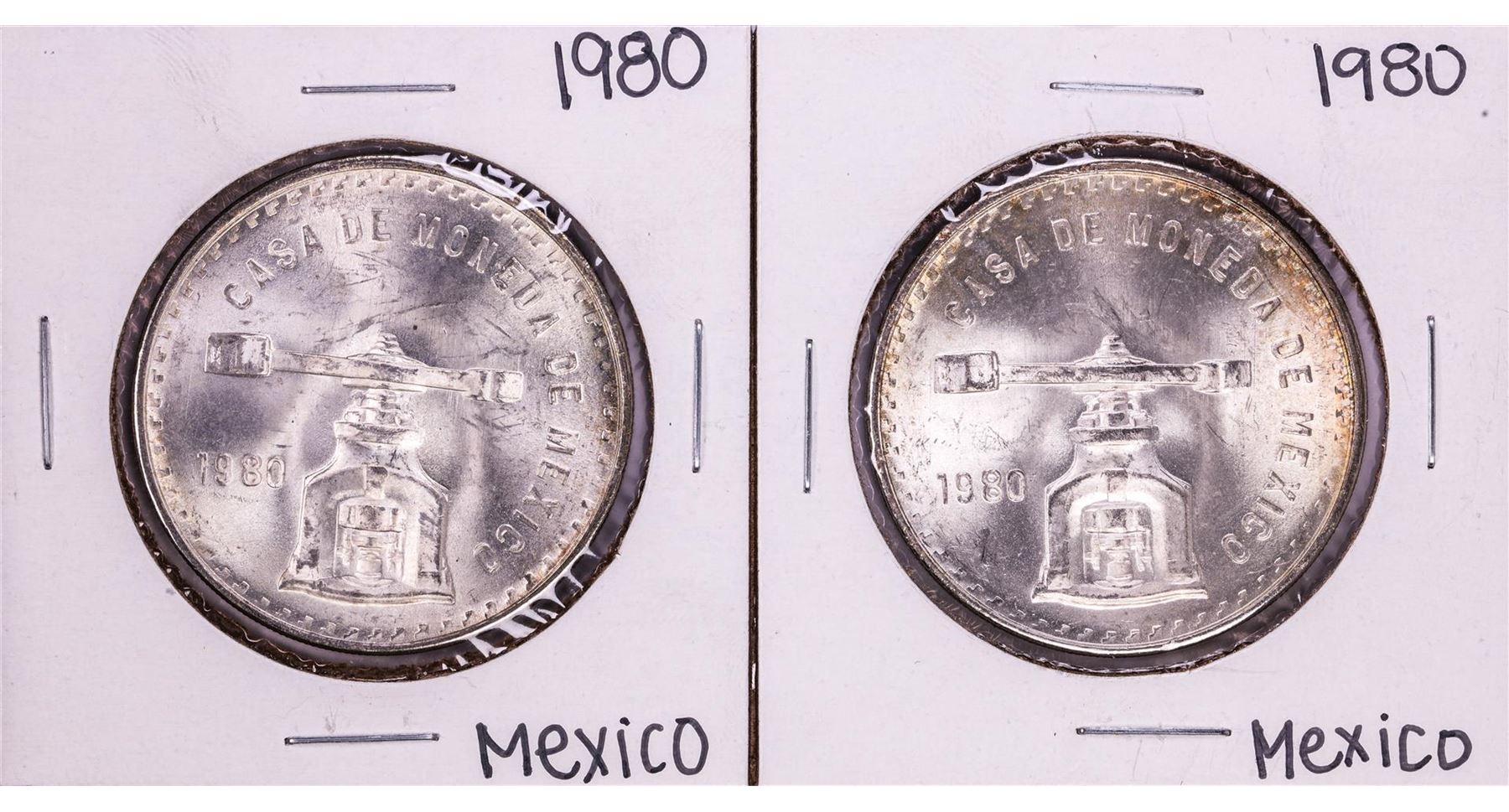 One Lot of (2) 1980 Mexico Onza Silver Coins.