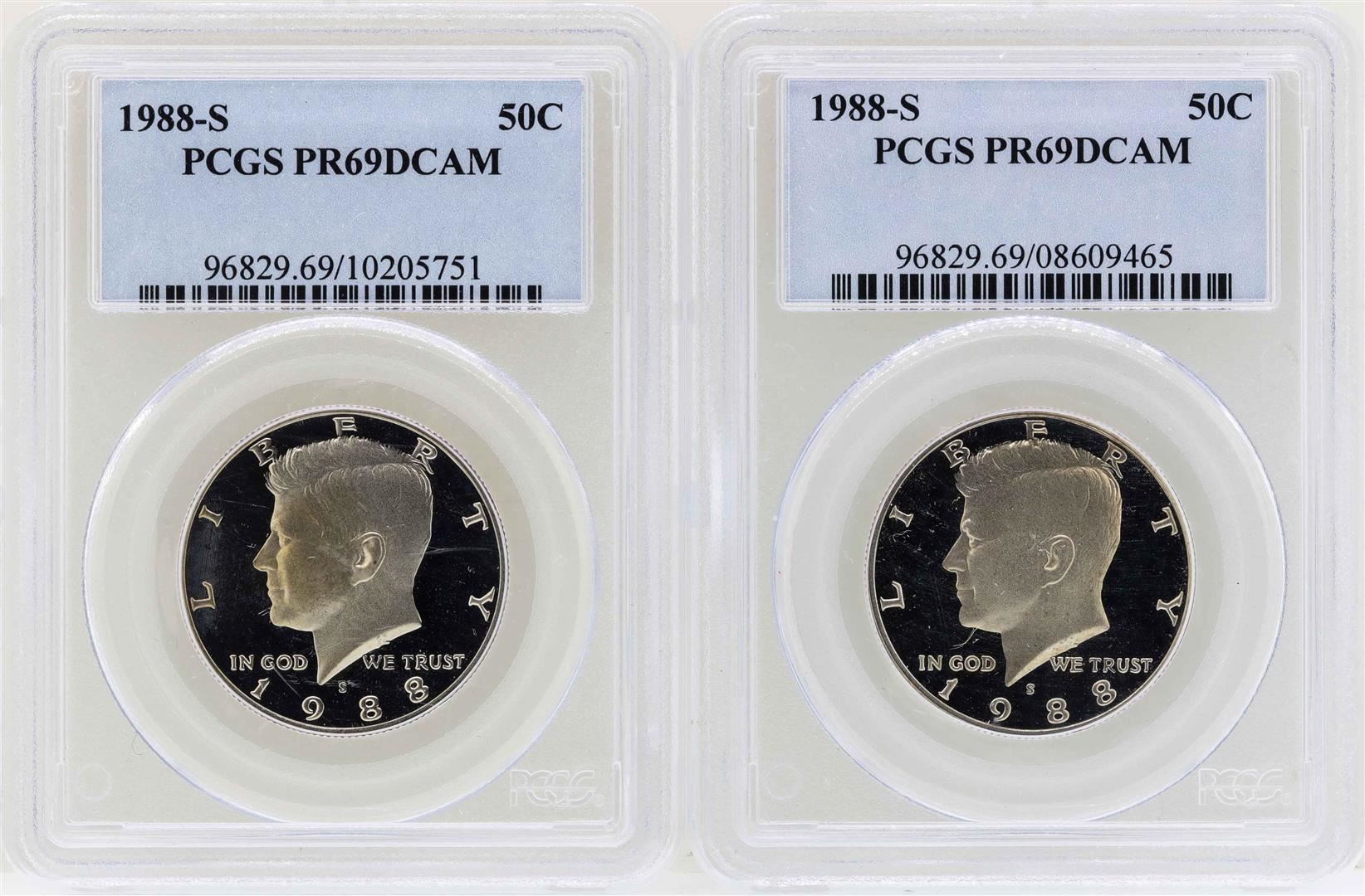 One Lot of (2) 1988-S Kennedy Half Dollar Coins PCGS PR69DCAM. PCGS Graded.