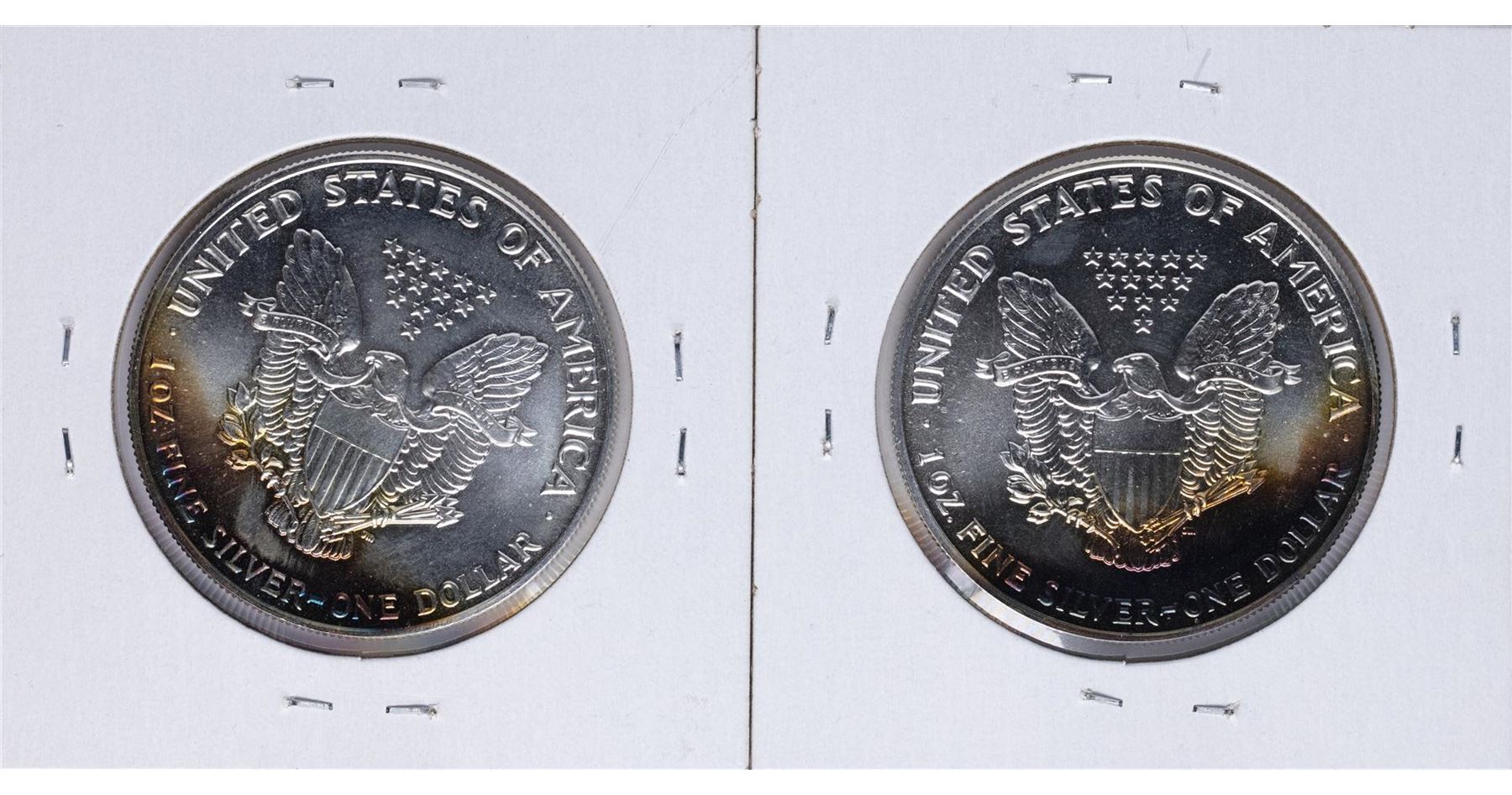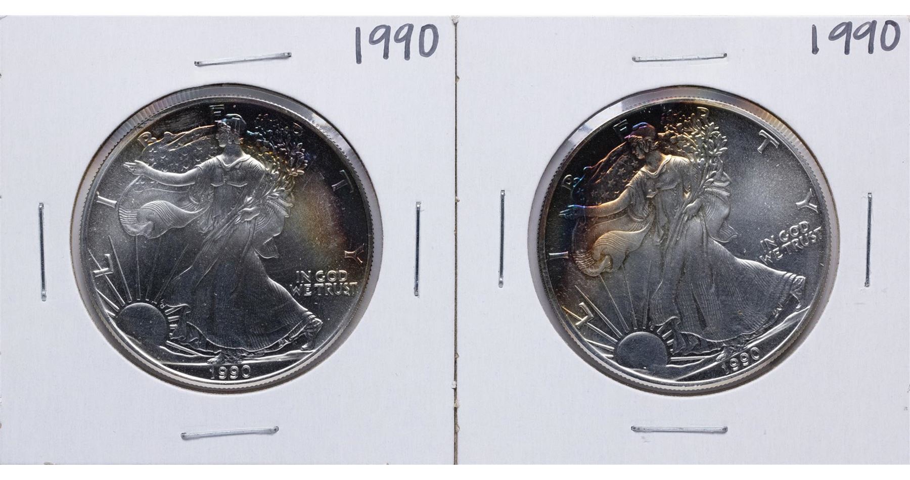 One Lot of (2) 1990 $1 American Silver Eagle Coins.
