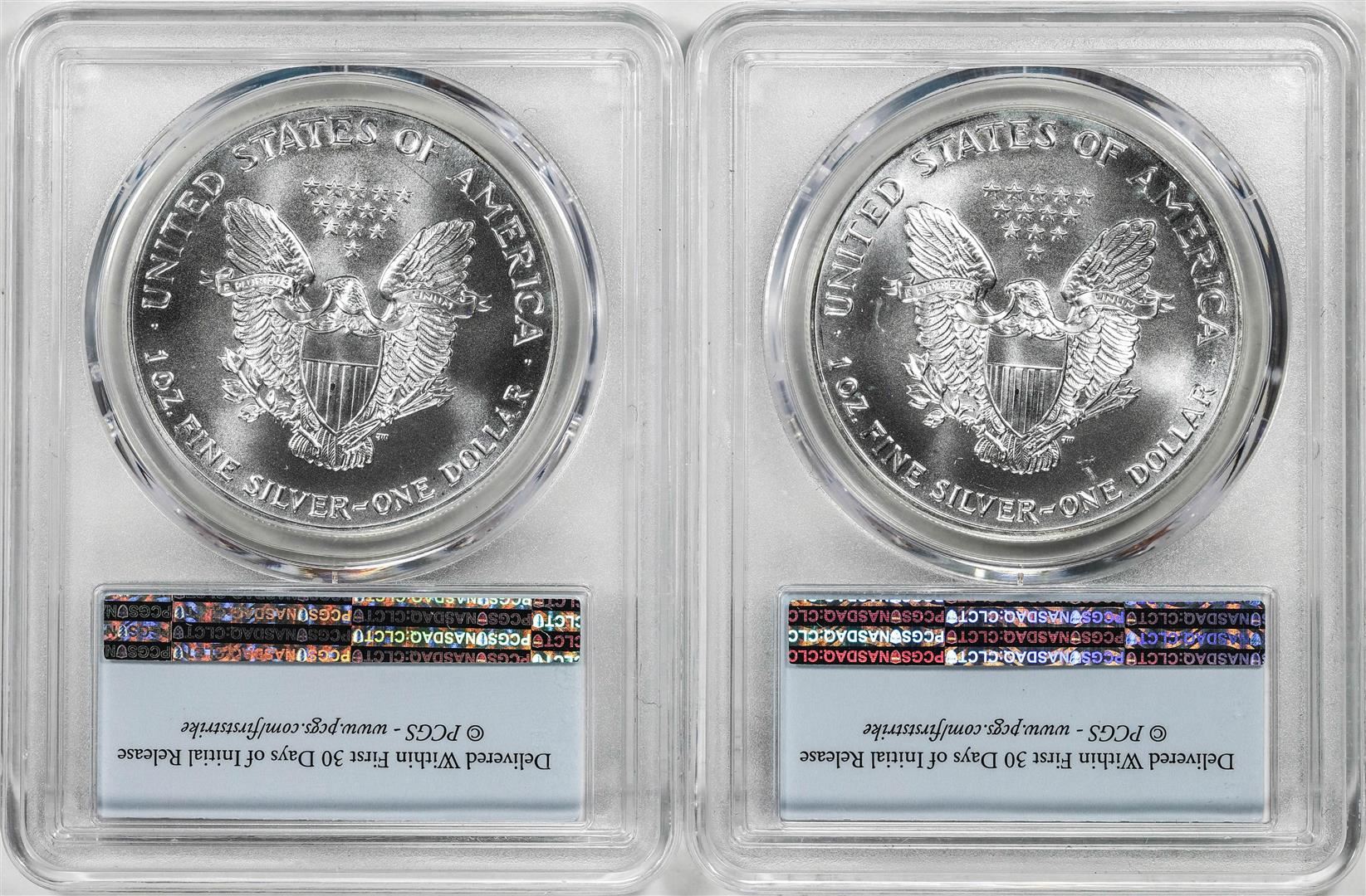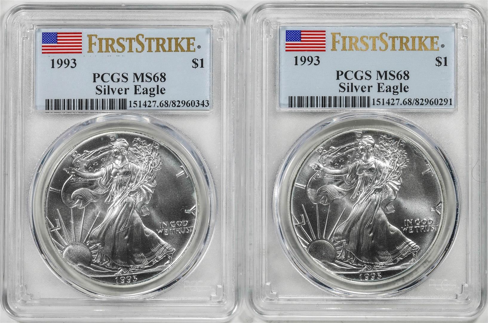 Lot of (2) 1993 $1 American Silver Eagle Coin PCGS MS68 First Strikes