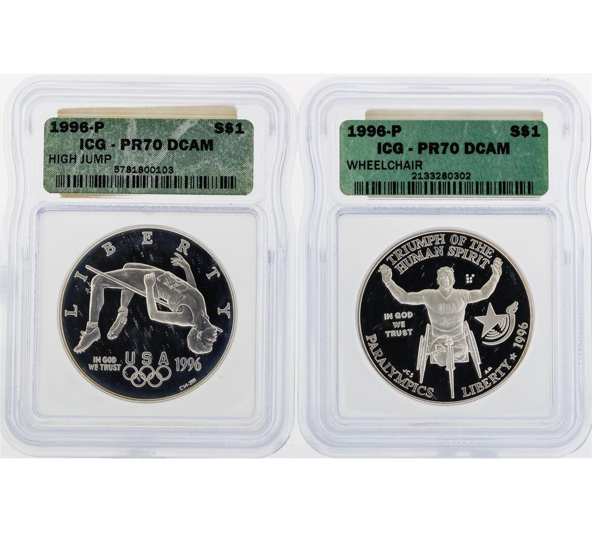 Lot of (2) 1996-P $1 Commemorative Silver Coins ICG PR70DCAM