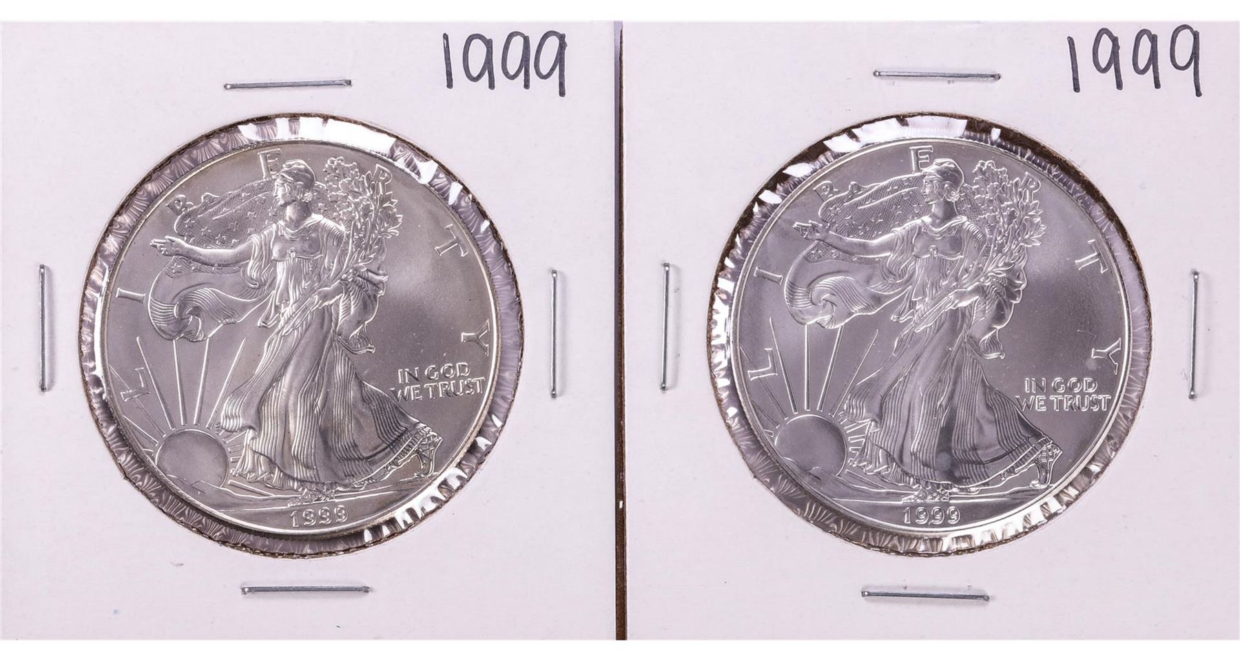 One Lot of (2) 1999 $1 American Silver Eagle Coins.