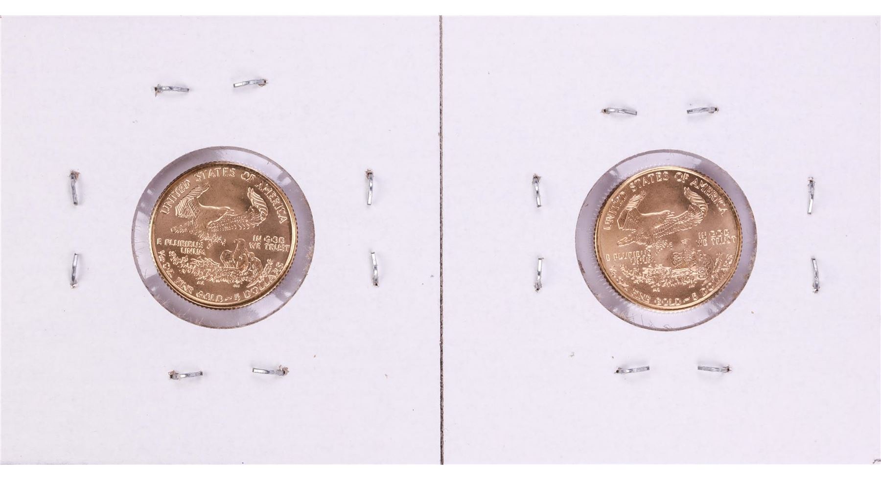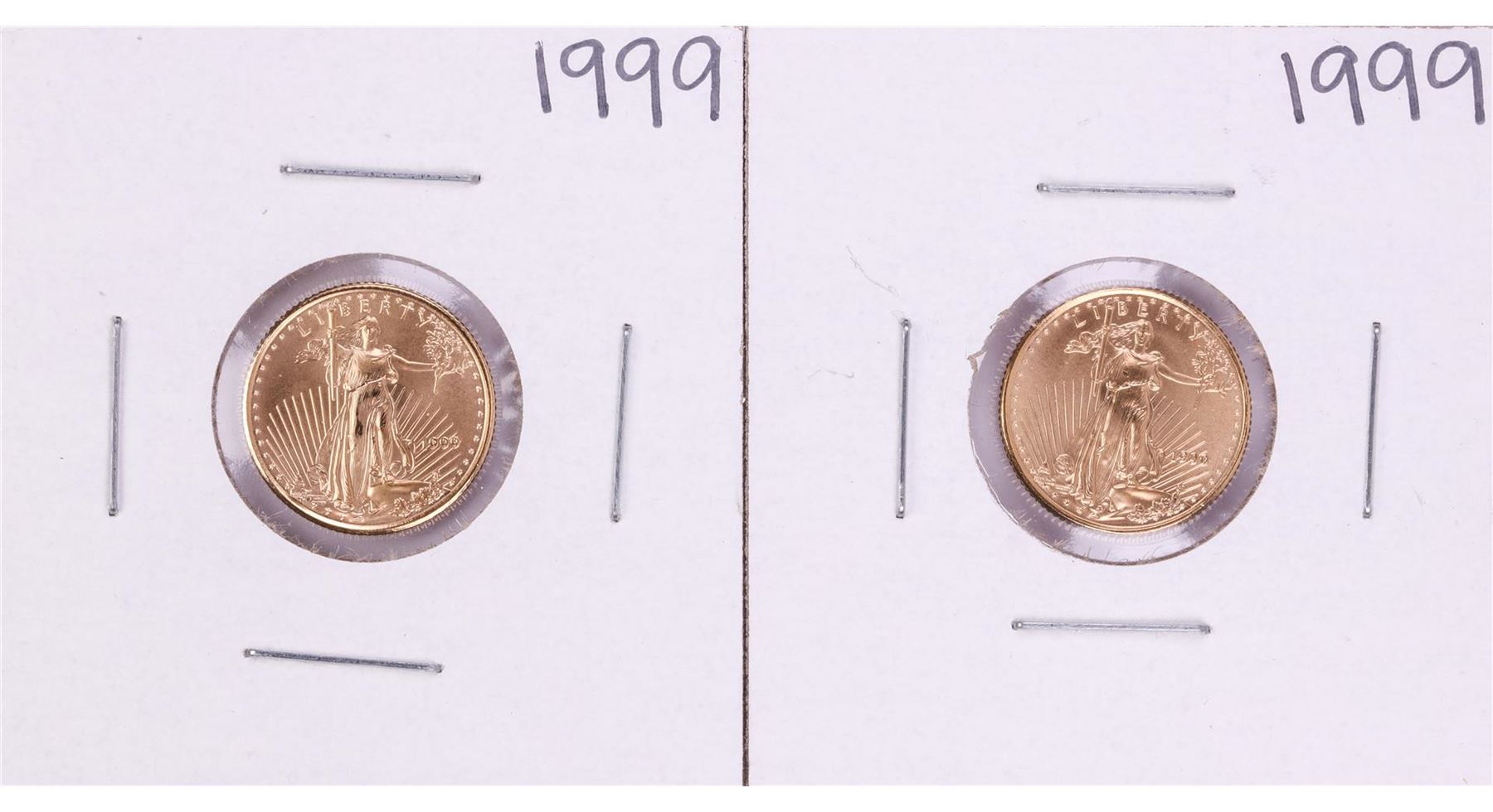 One Lot of (2) 1999 $5 American Gold Eagle Coins.