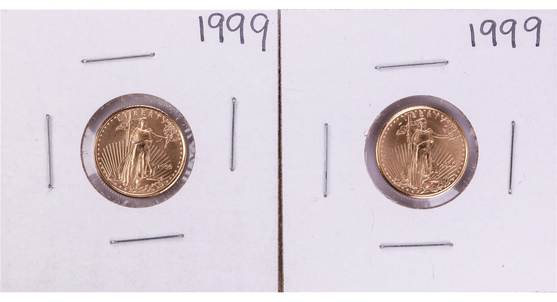 One Lot of (2) 1999 $5 American Gold Eagle Coins.