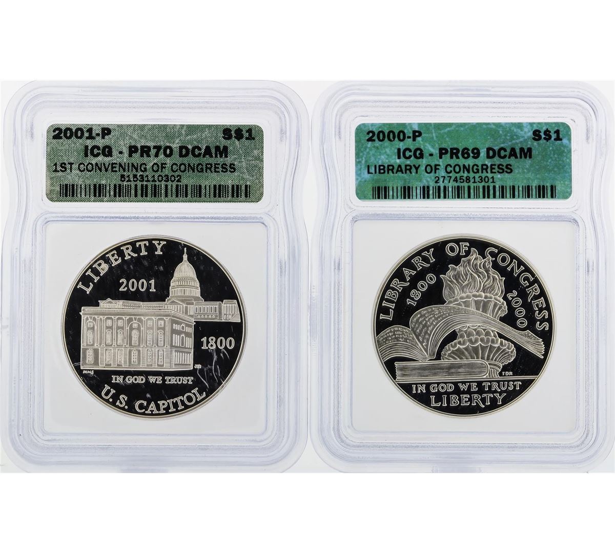 One Lot of (2) 2000-2001 $1 Commemorative Silver Coins ICG Graded. ICG Certified.