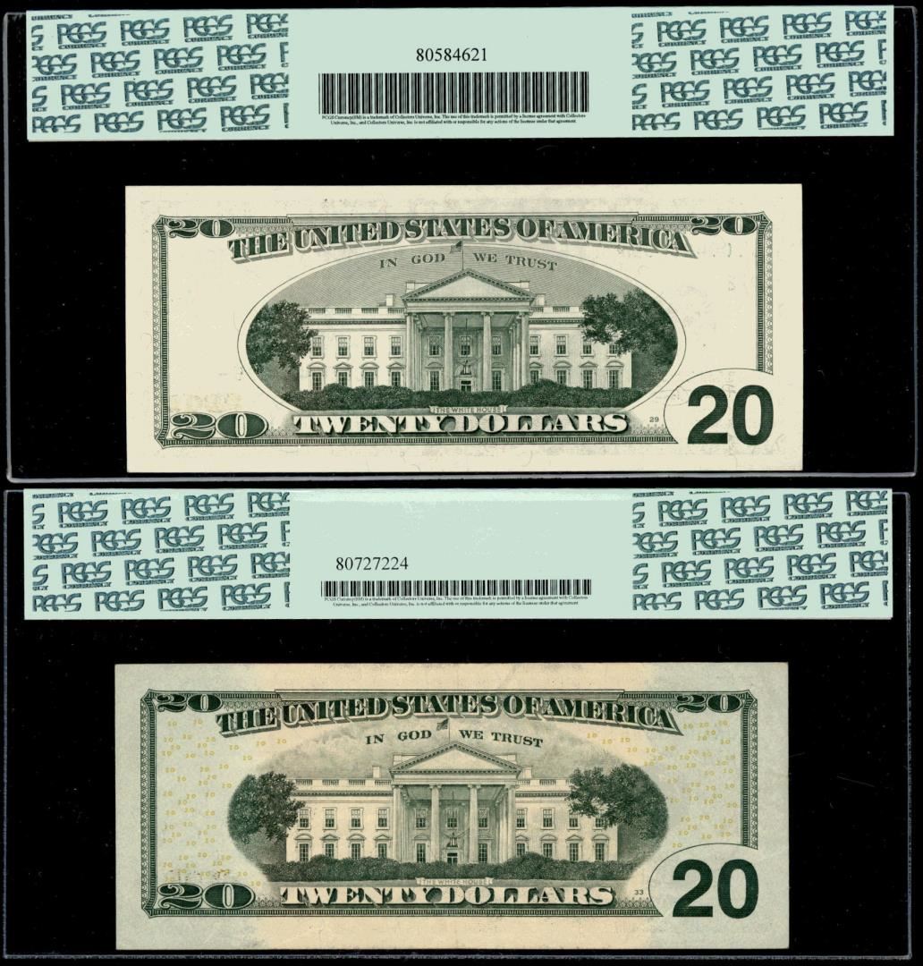 One Lot of (2) 2001/2009 $20 Federal Reserve STAR Notes PCGS Graded. PCGS Graded.