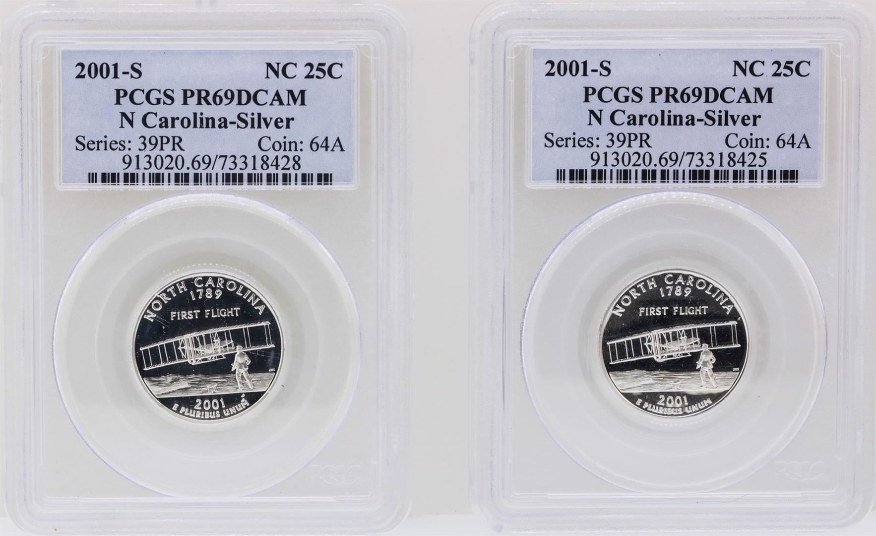 Lot of (2) 2001-S State Quarter Silver Coins PCGS PR69DCAM