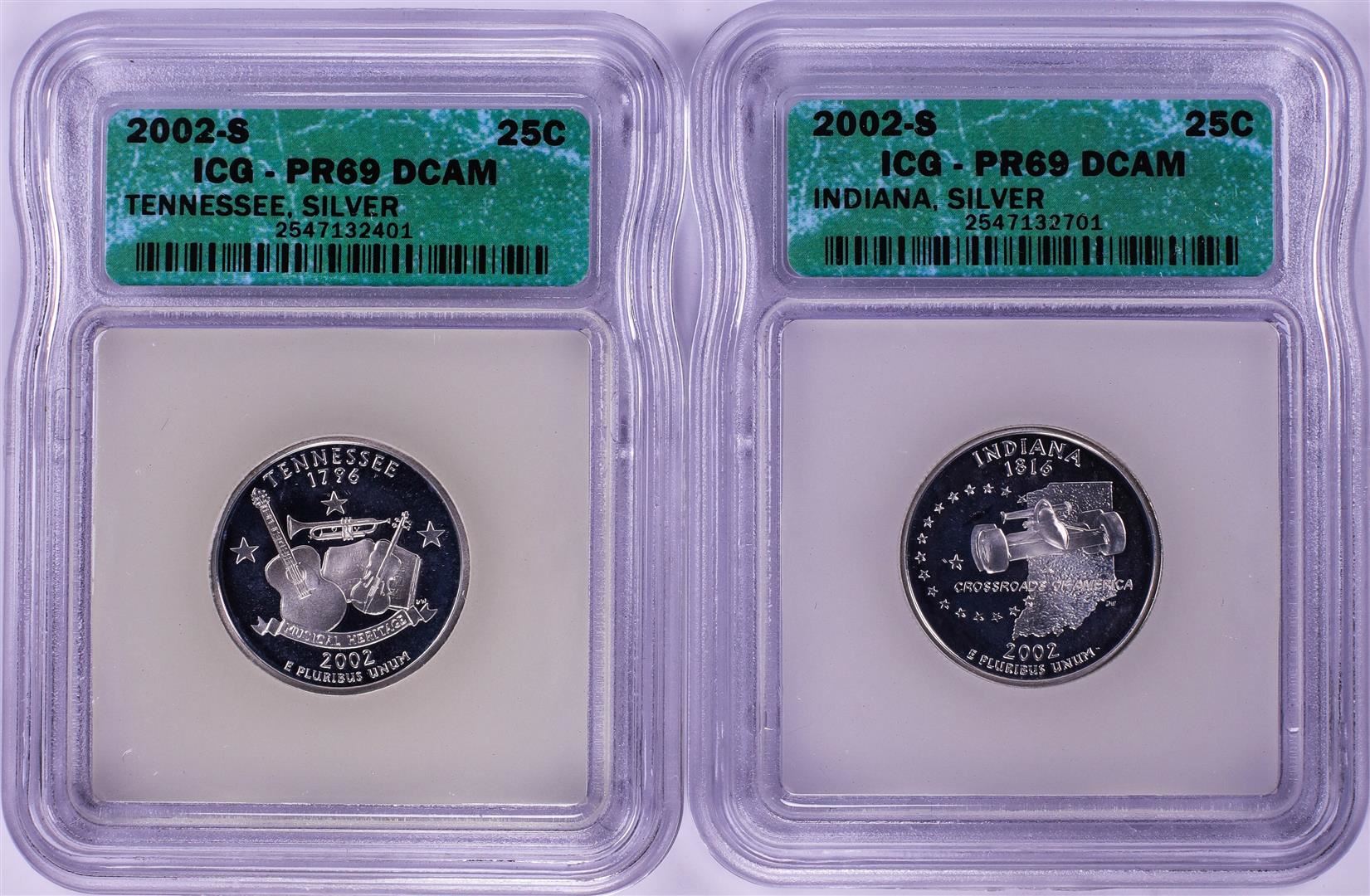 Lot of (2) 2002-S Proof Silver State Quarter Coins ICG PR69DCAM