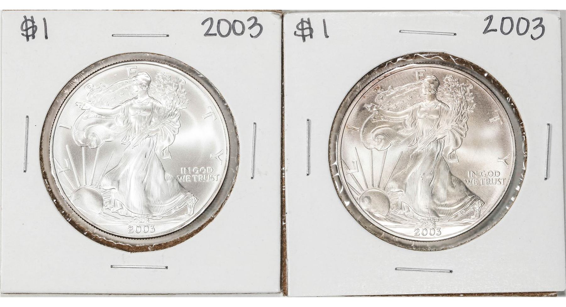 One Lot of (2) 2003 $1 American Silver Eagle Coins.