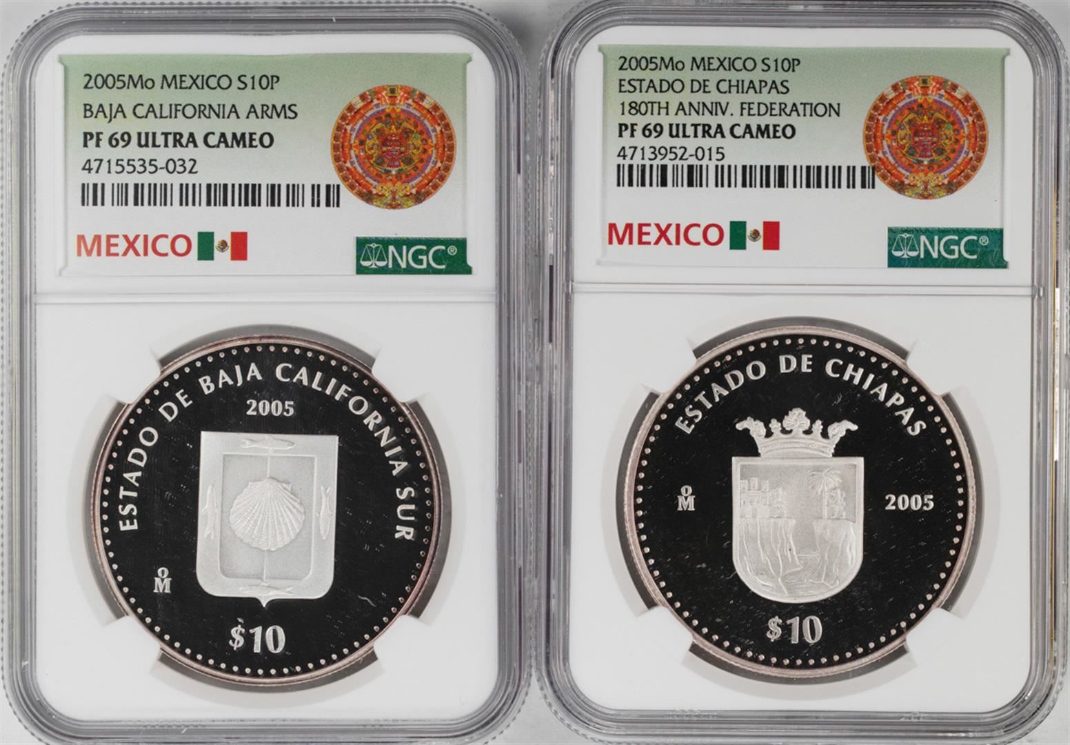 Lot of (2) 2005Mo Mexico Proof 10 Pesos Silver Coins NGC PF69 Ultra Cameo