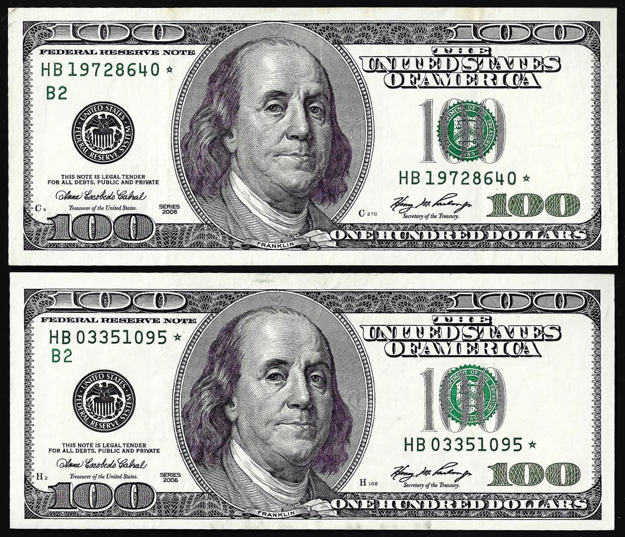 One Lot of (2) 2006 $100 Federal Reserve Star Notes.